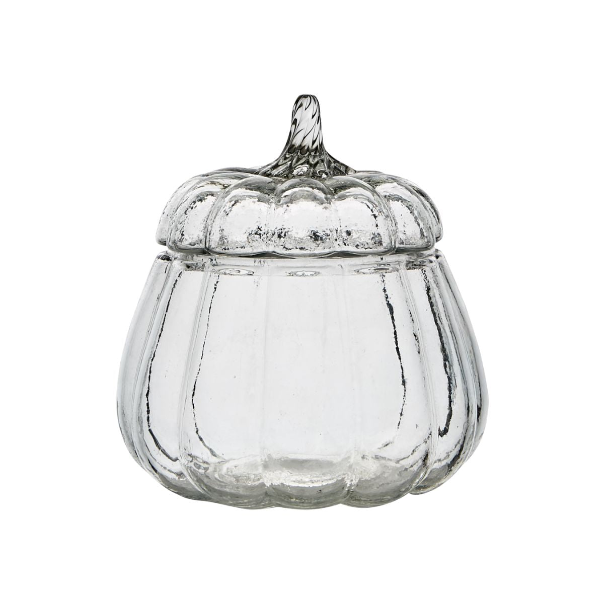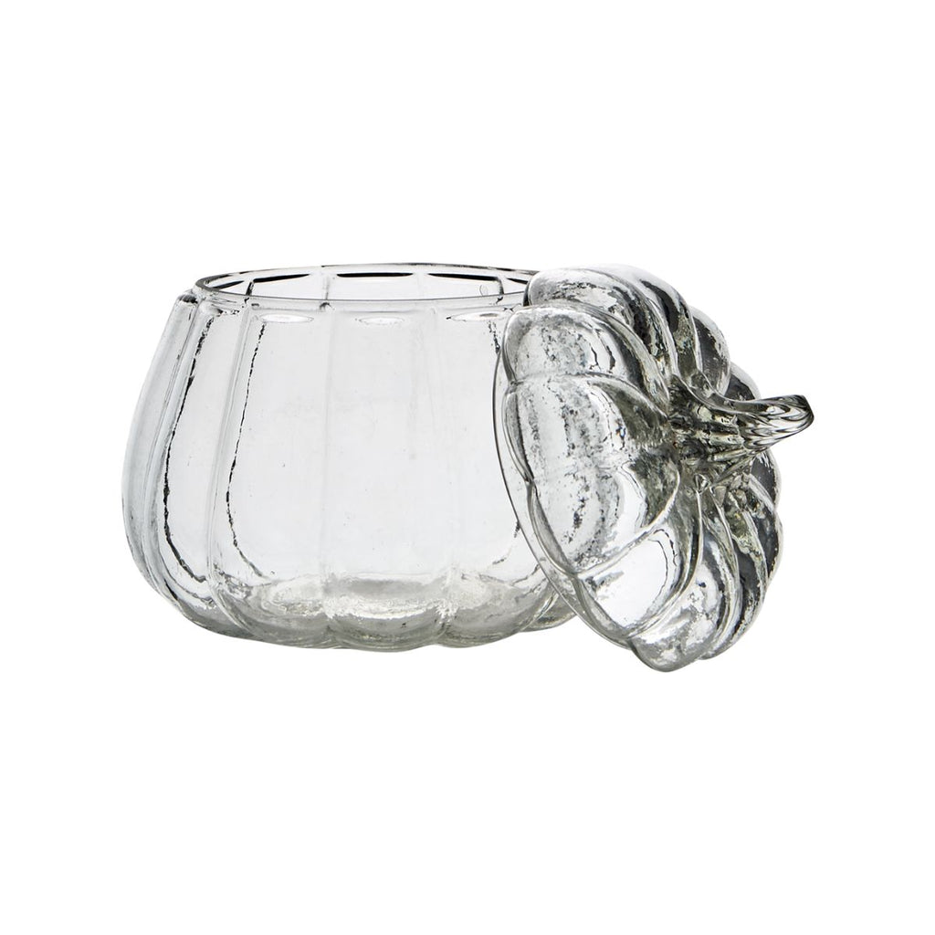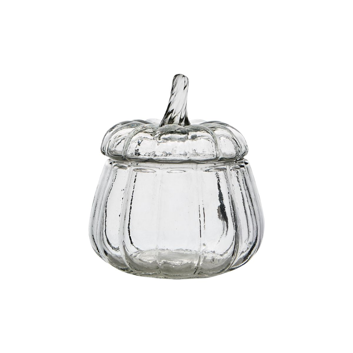 El Bol de cristal con tapa Pumpkin Affari of Sweden aporta un encanto otoñal y sofisticado a cualquier hogar. Tanto para guardar dulces, frutos secos u otros alimentos pequeños, como para lucirlo como un elegante recipiente decorativo, su diseño en forma de calabaza refleja la esencia del estilo natural y aporta personalidad a tu mesa o cocina.