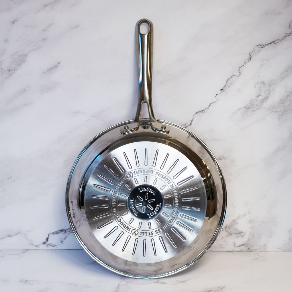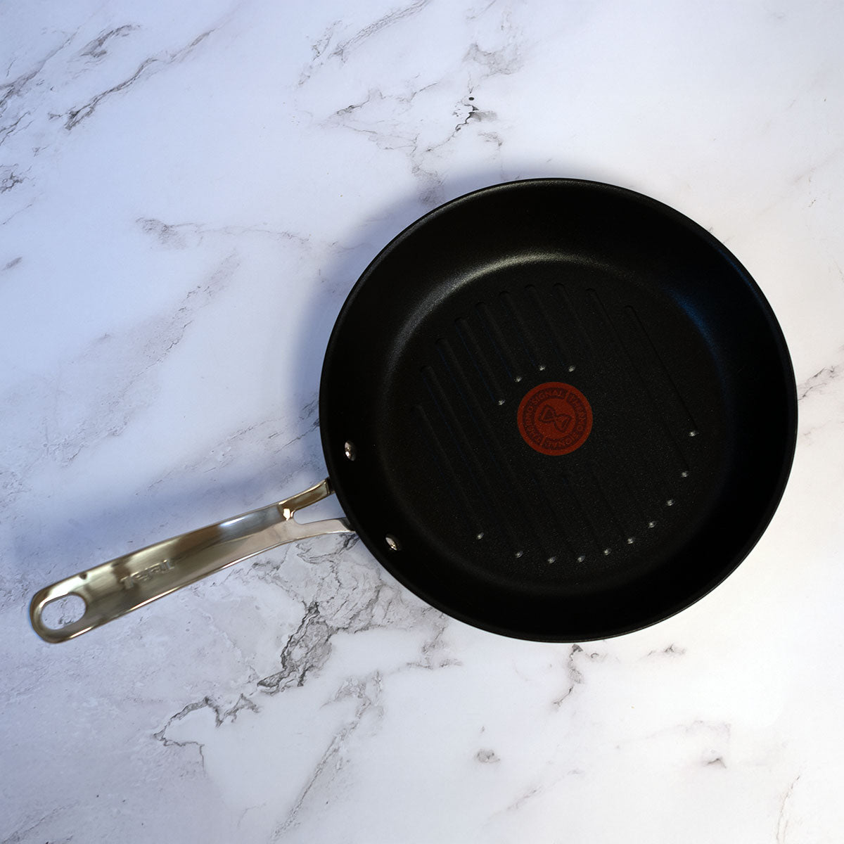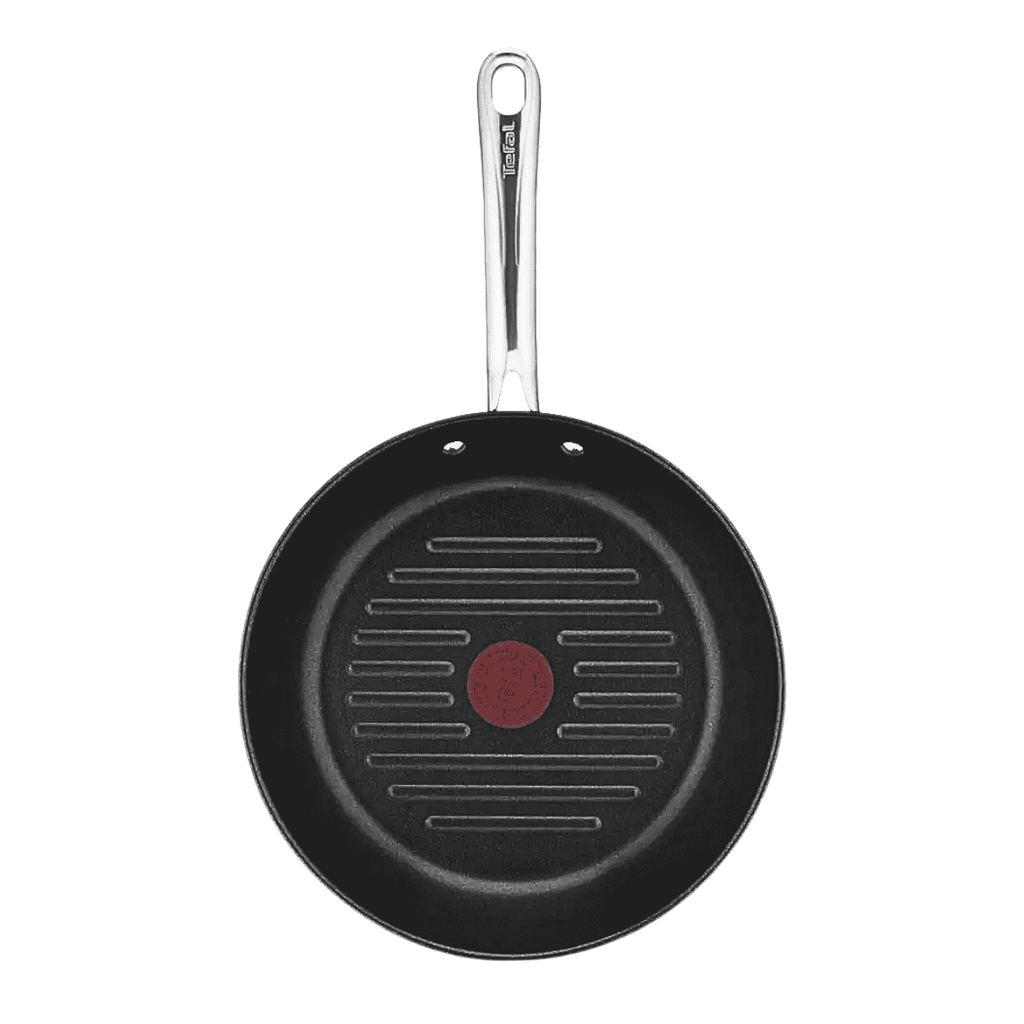 Es una pieza que combina un cuerpo robusto de acero inoxidable con un revestimiento antiadherente de alta resistencia, y que incorpora el clásico Thermo-Signal™ de Tefal para ayudarte a cocinar en el punto justo. Además, ofrece una superficie amplia, al tratarse de una sartén grill de 26 cm de diámetro.