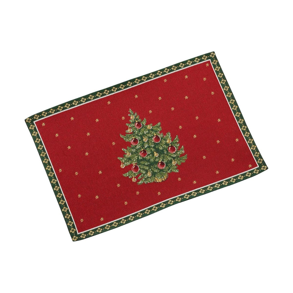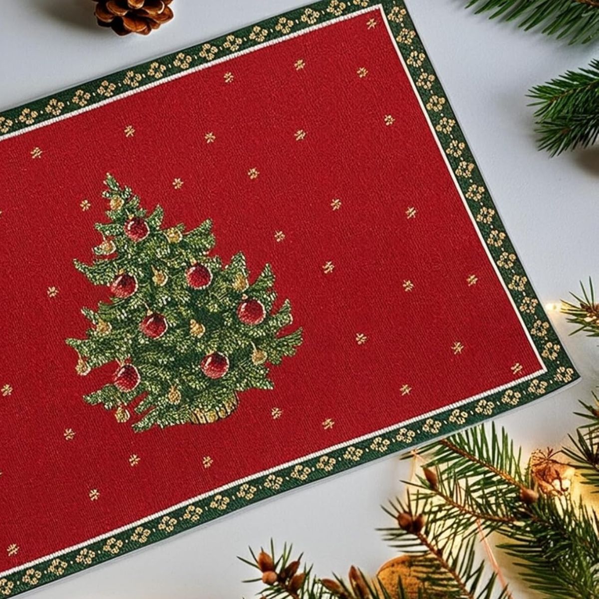 El árbol de Navidad decorado, destaca en el centro de este elegante mantel rojo, acompañado por diferentes motivos navideños. Ideal para llenar tu mesa de ilusión, tradición y magia, es también un regalo de lo más especial.