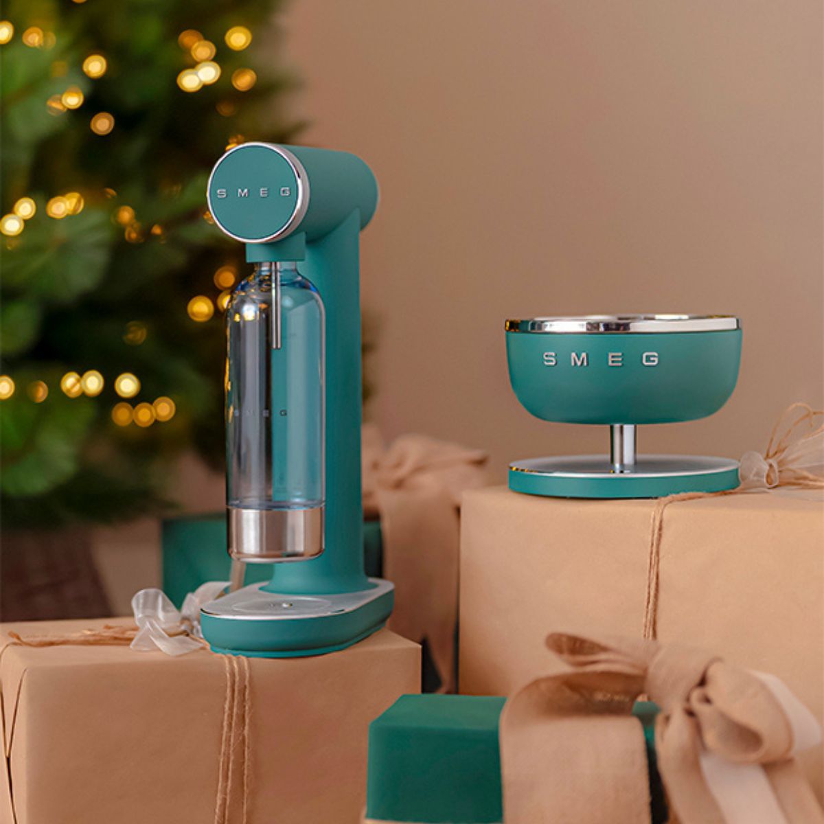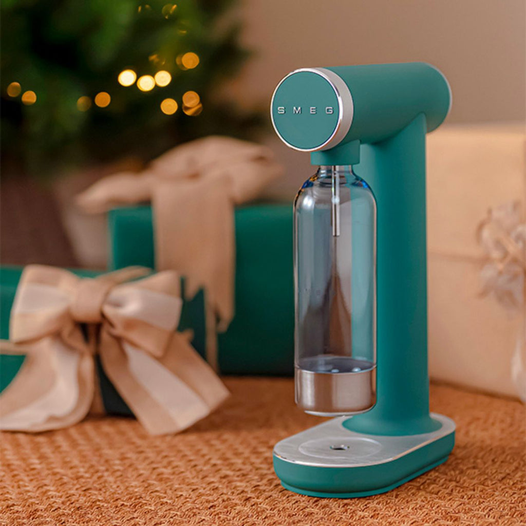 Si adoras el agua con gas o te gustaría hacer en casa tus refrescos con burbujas, la Máquina para hacer agua con gas Soda Maker Smeg te lo va a poner muy fácil. De forma sostenible y saludable, y sin cables, enchufes o baterías, sin tener que cargar botellas del supermercado ni generar residuos innecesarios, esta estilosa gasificadora de bebidas o carbonatadora te permitirá hacer agua con gas o tu bebida carbonatada favorita al instante. Con un diseño compacto y elegante, y un funcionamiento sencillo con cartuchos estándar de CO₂, ¡verás qué bien se te da preparar tus bebidas más burbujeantes!