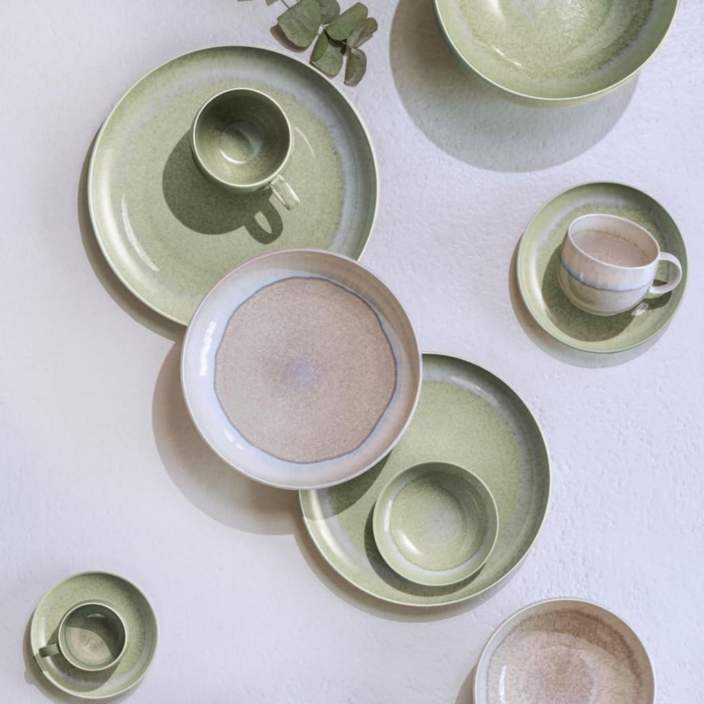 Con el Plato de porcelana Perlemor Alga Villeroy & Boch llevarás a tu mesa una brisa mediterránea, con su color verde degradado que invita a recordar los días largos de verano en la costa. Su esmalte de efecto especial le confiere un aspecto artesanal, con ligeras variaciones de color que hacen a cada plato una pieza única.