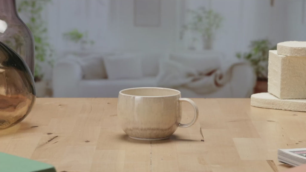 Todas las tazas presentan un acabado ligeramente distinto gracias a su esmaltado con técnica de vidriado reactivo, lo que hace que parezcan hechas a mano; un detalle que les confiere mucho carácter y hace que cada pieza sea única y diferente, pero con la misma calidad. El acabado transmite una sensación natural, ideal para combinar con otras piezas de tu vajilla o de la colección Perlemor y crear una mesa cálida y muy acogedora.