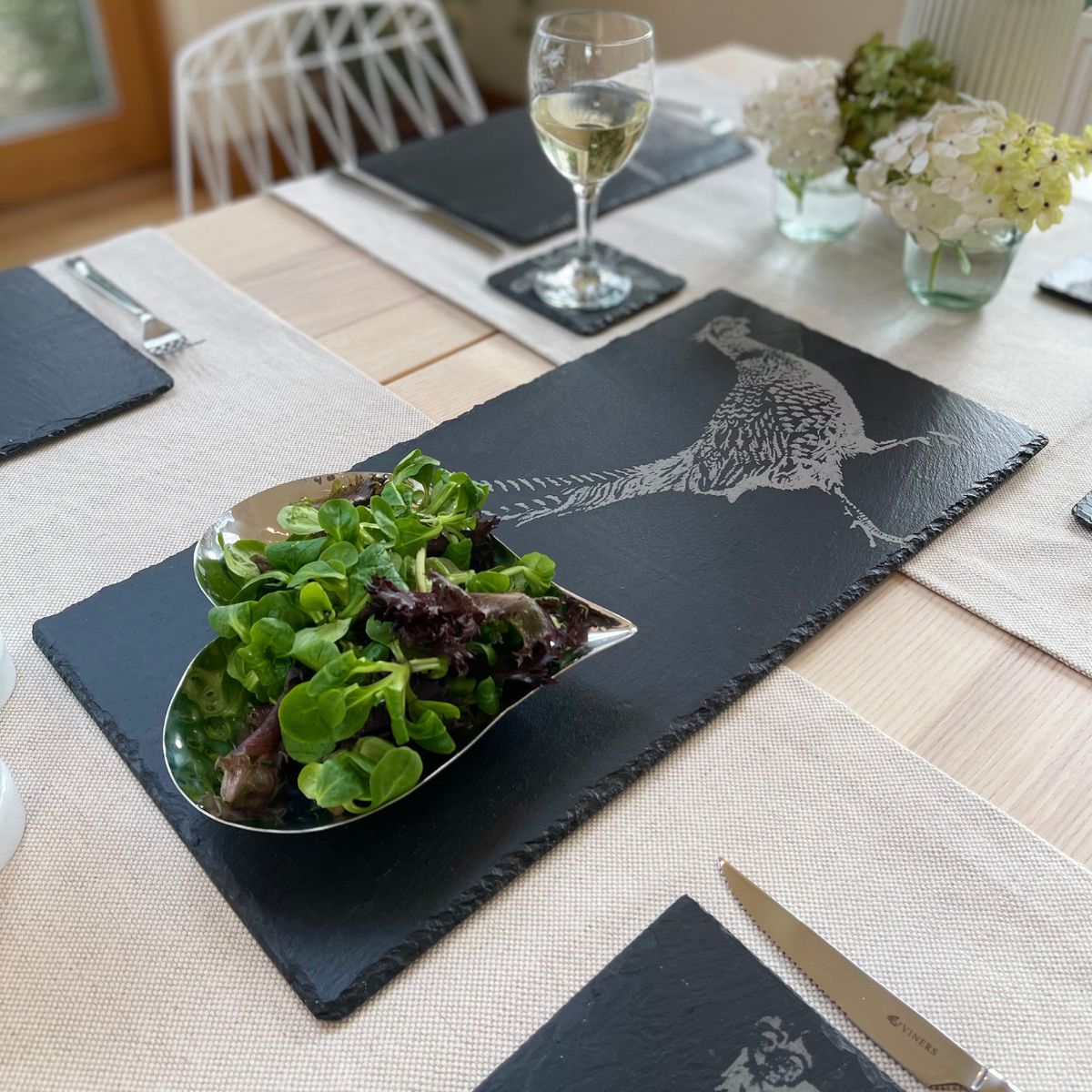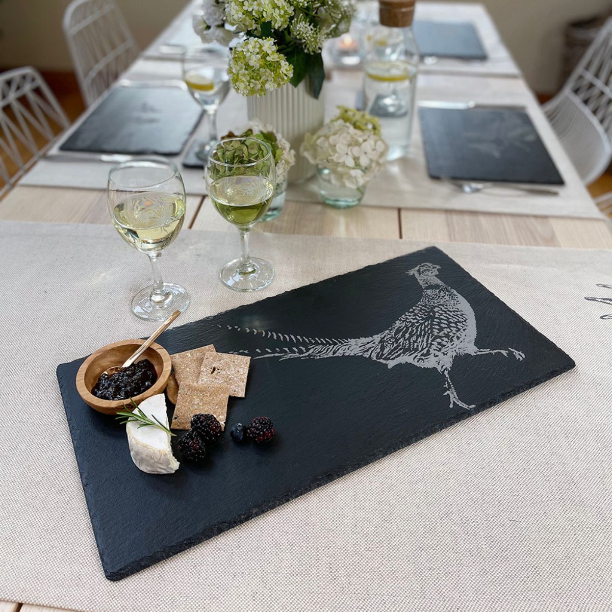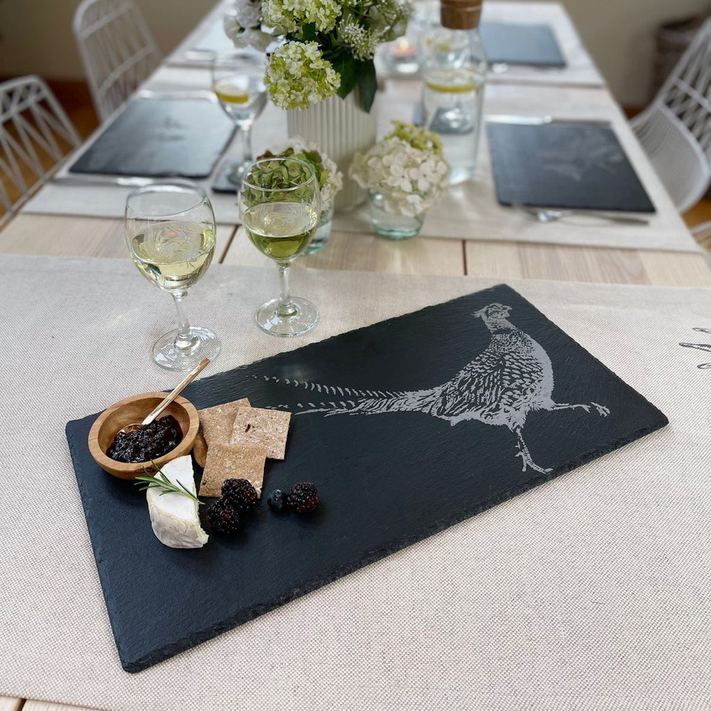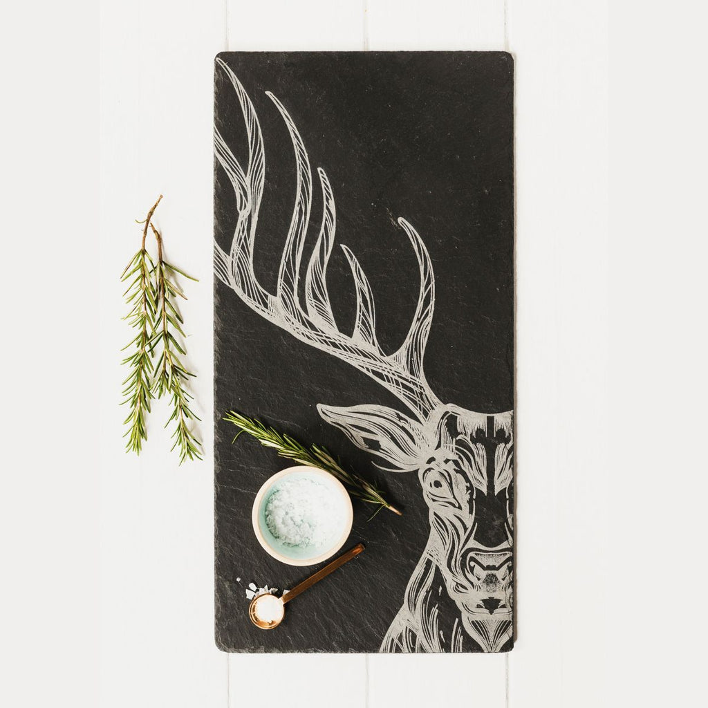 Hecha a mano en Escocia, la Tabla rectangular grande de pizarra Selbrae es un precioso y amplio plato de pizarra natural, que lucirá como ninguno en la mesa. Como ves, el diseño de la tabla cuenta con el encantador grabado de una imagen ilustrada a mano. Cada tabla es una pieza artesanal, única e irrepetible, ideal como bandeja para llevar a la mesa y presentar tanto aperitivos, como entrantes fríos o calientes. Una tabla preciosa, original, única y de gran calidad.