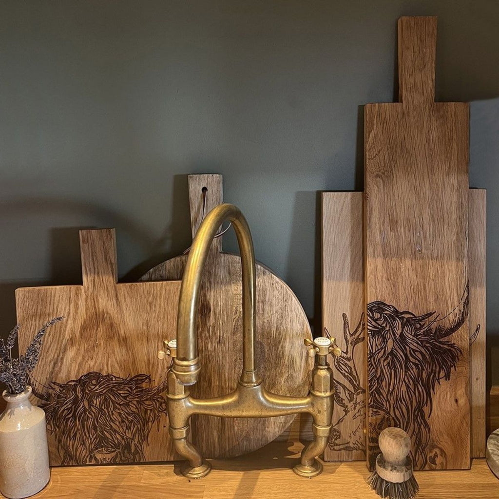 La Tabla rectangular para servir y cortar de madera de roble Selbrae es la forma más encantadora de presentar en la mesa tus cenas de picoteo, los aperitivos, postres, el pan, untables, patés, ¡lo que quieras! Estas tablas de madera de roble están hechas a mano en Escocia y son una auténtica obra de arte. Verás que, además de su impresionante diseño, cada tabla cuenta con el precioso grabado de un animal. Perfecta para cortar y servir, su fabricación artesanal convierte a cada tabla en una pieza única, ideal para cualquier momento y compañía.