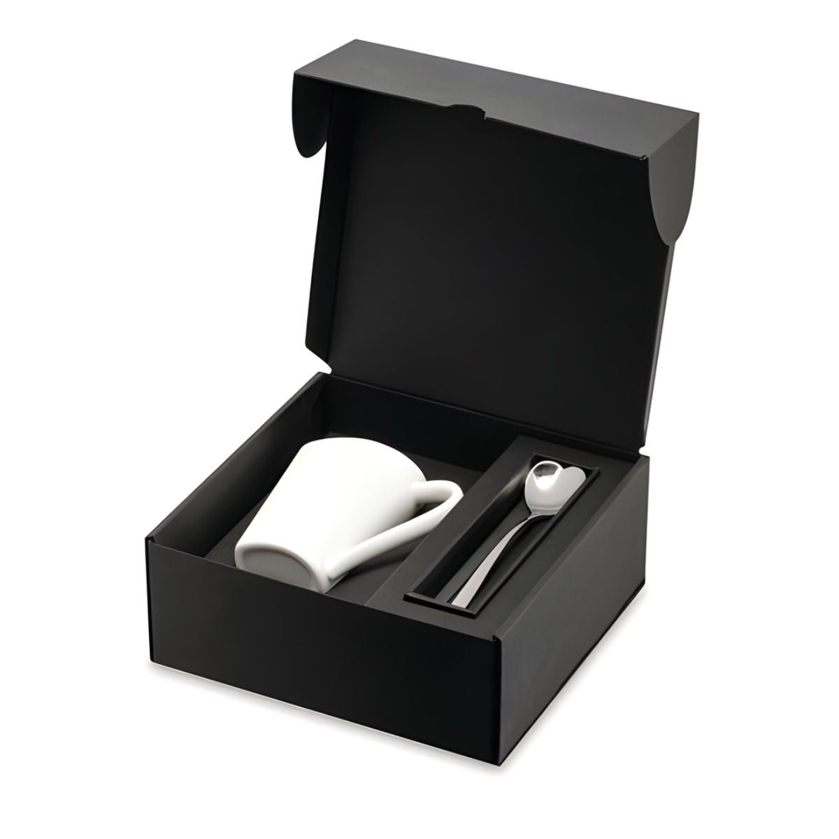 El set se presenta en una bonita y elegante caja, lo que lo convierte en un regalo de lo más ideal para quien más quieres, ¡o para ti! Además, es perfecta para mantener la taza y la cuchara siempre bien guardadas.