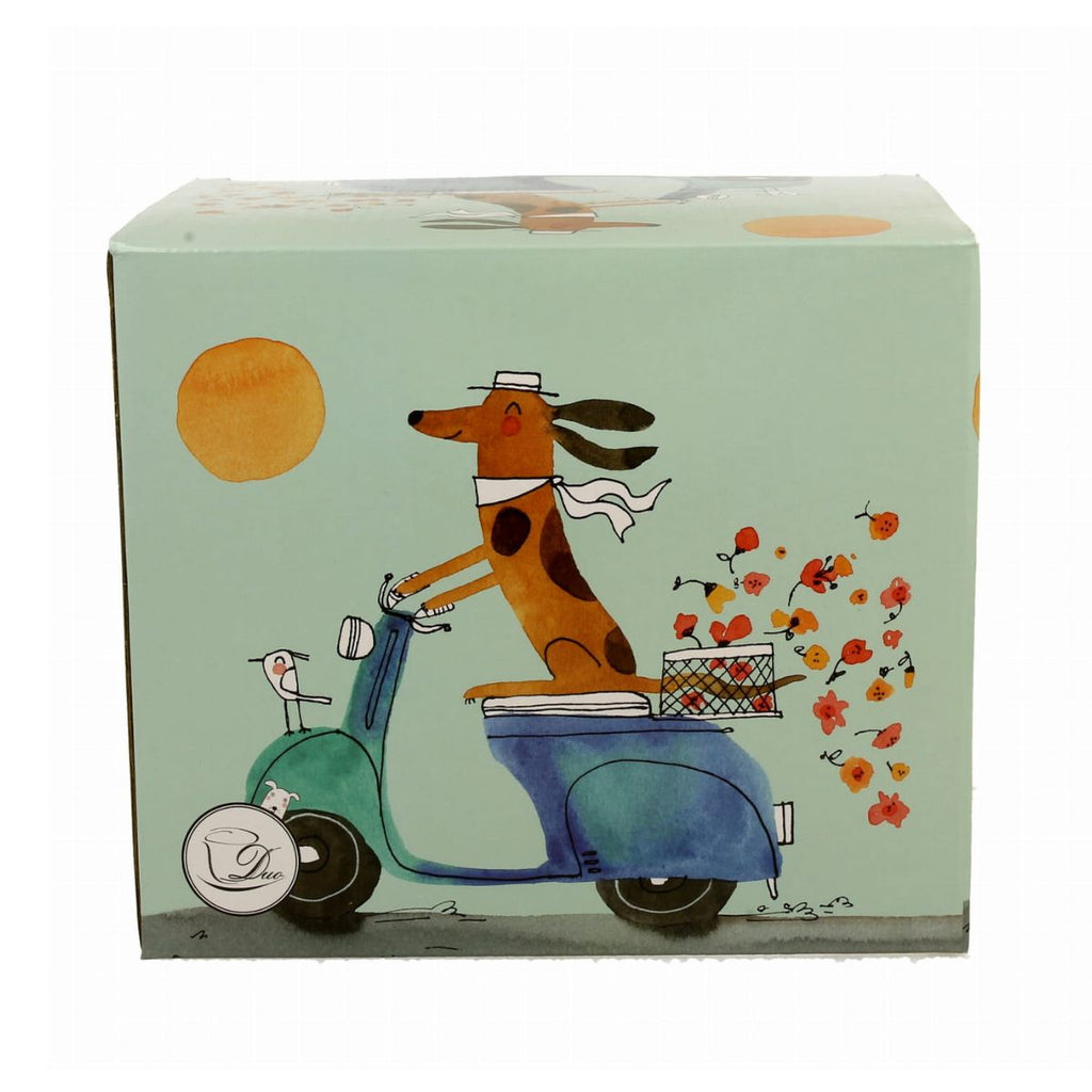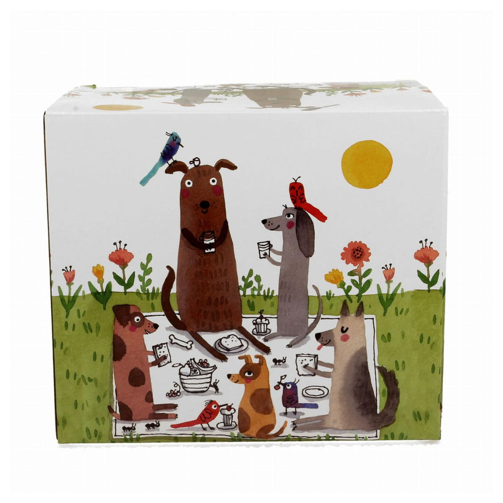Además, está disponible en tres diseños distintos para que puedas elegir cual de ellos de gusta más. Los tres tienen unos divertidos perritos como protagonistas. En uno de los diseños aparece un perrito montado en un scooter, en otro dos perritos disfrutando de un pícnic en el campo y en el último, unos perros paseando.