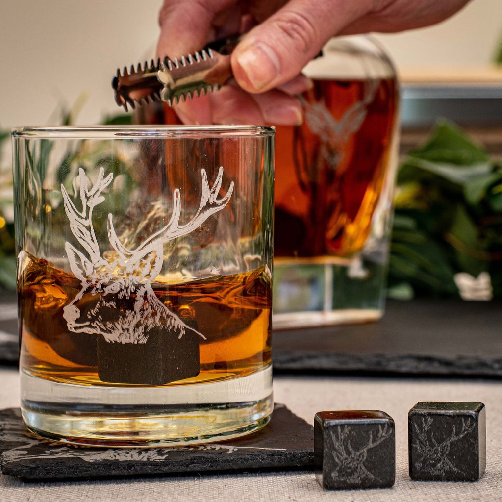 La presentación de este set no puede ser más elegante. Todos sus detalles rebosan estilo y sobriedad, y lo convierten en un regalo ideal, duradero, funcional y perfecto para impresionar. Puedes elegir el grabado que más te guste o el que prefieras regalar, ya sea la vaca de los Highlands, el ciervo, o el jugador de golf (deporte tradicionalmente escocés). O puedes escogerlos todos para tener la colección completa y olvidarte de los cubitos de hielo que se deshacen y aguan tu bebida.