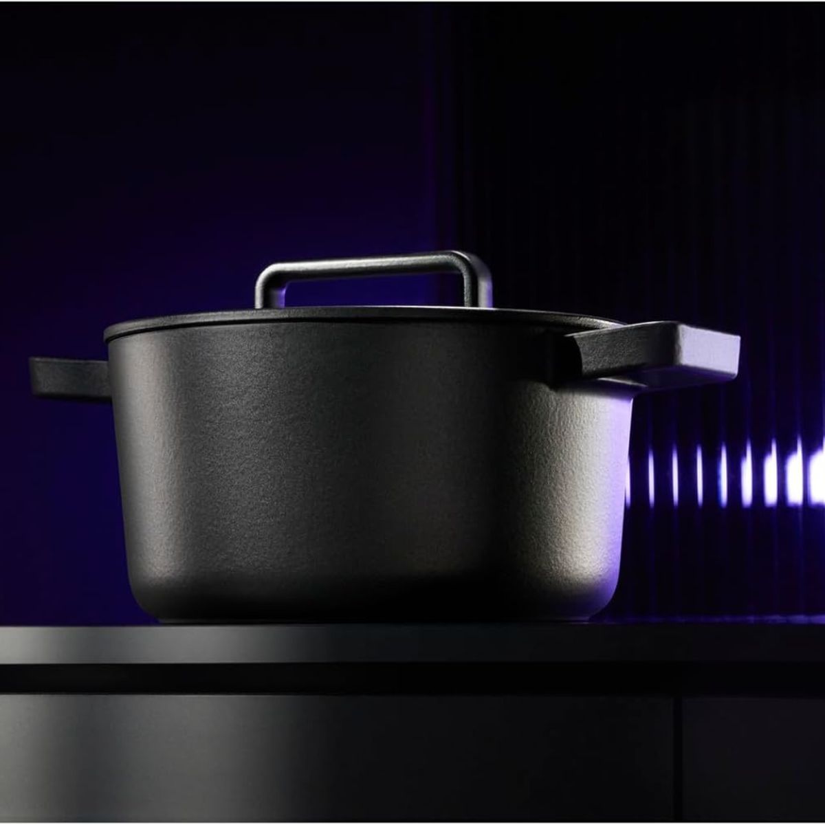 La cocotte Flavour tiene todas las virtudes que le proporciona la construcción en hierro fundido. Su fabricación artesanal, su tapa de condensación, también de hierro, y su diseño moderno y minimalista, hacen que esta elegante olla sea una pieza esencial en la cocina, que destaca por: