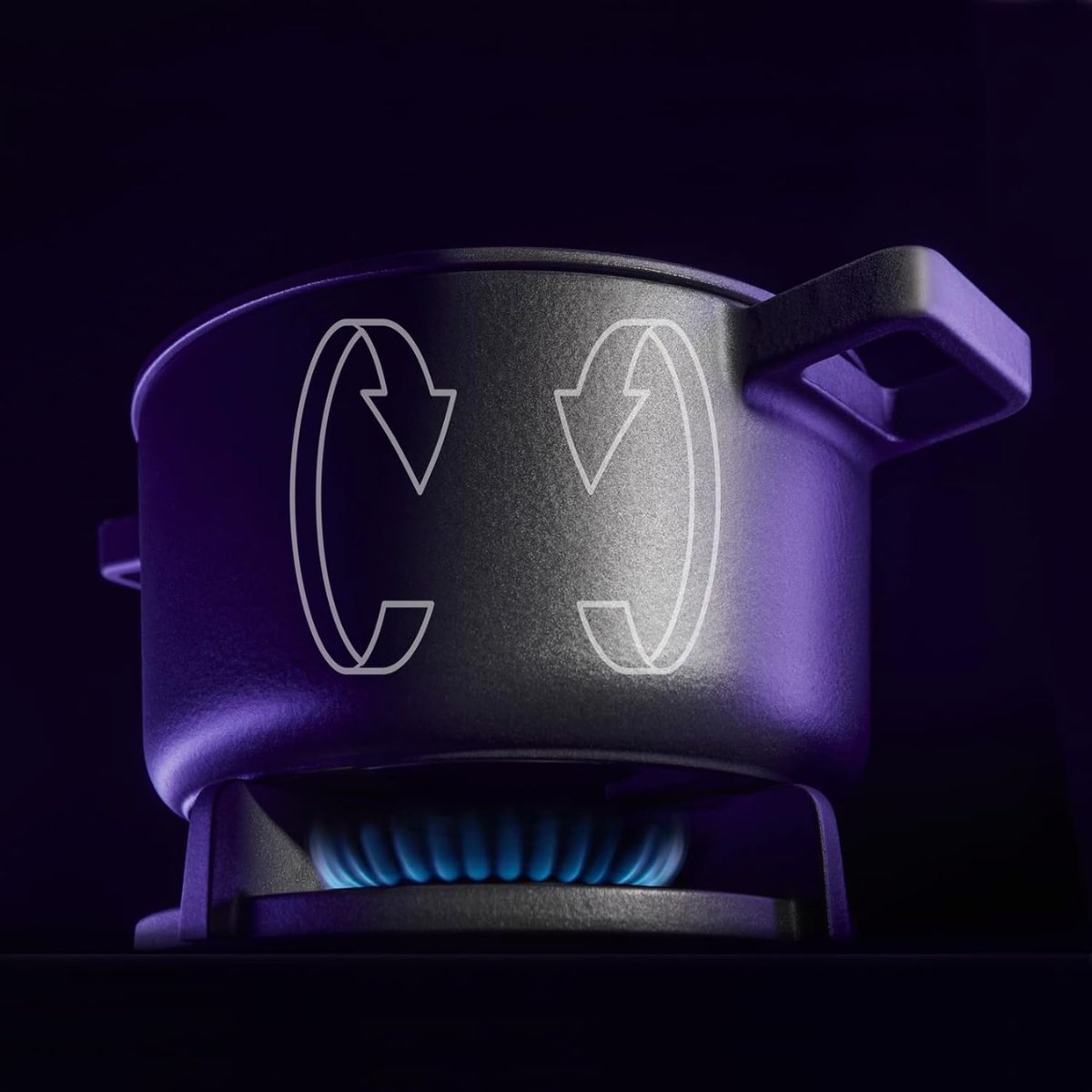 - Su diseño le confiere una generosa capacidad y una gran versatilidad. Podrás cocinar tus mejores recetas a fuego suave, ya sea para guisar, estofar, hacer salsas y reducciones, caldos, sopas y purés. Su altura y su excelente retención del calor, la hacen perfecta para saltear, dorar o freír a altas temperaturas. Además, es un estupendo molde para hornear masas de pan, bizcochos, o brioches.