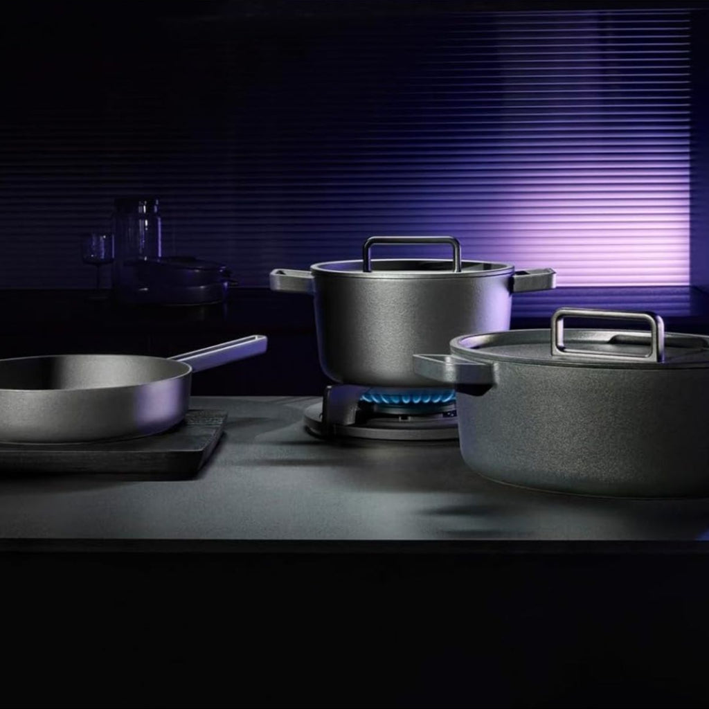 Cada detalle de la Cocotte de hierro fundido Flavour WMF la hace una cazuela única. Una olla baja de hierro fundido esmaltado que, con su tapa de condensación y su excelente retención y transmisión de la temperatura, hará que tus guisos resulten tan sabrosos y jugosos que merezcan todas las estrellas Michelin. Con un diseño moderno y minimalista, esta cocotte de hierro hecha en Alemania, está fabricada a mano, con toda la excelencia de la mejor artesanía tradicional y toda la durabilidad que proporciona el hierro fundido.