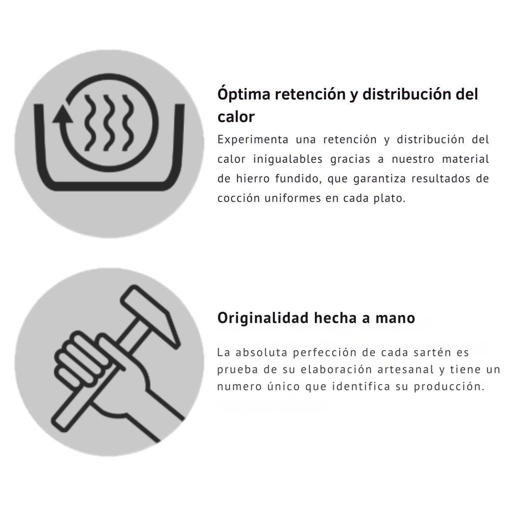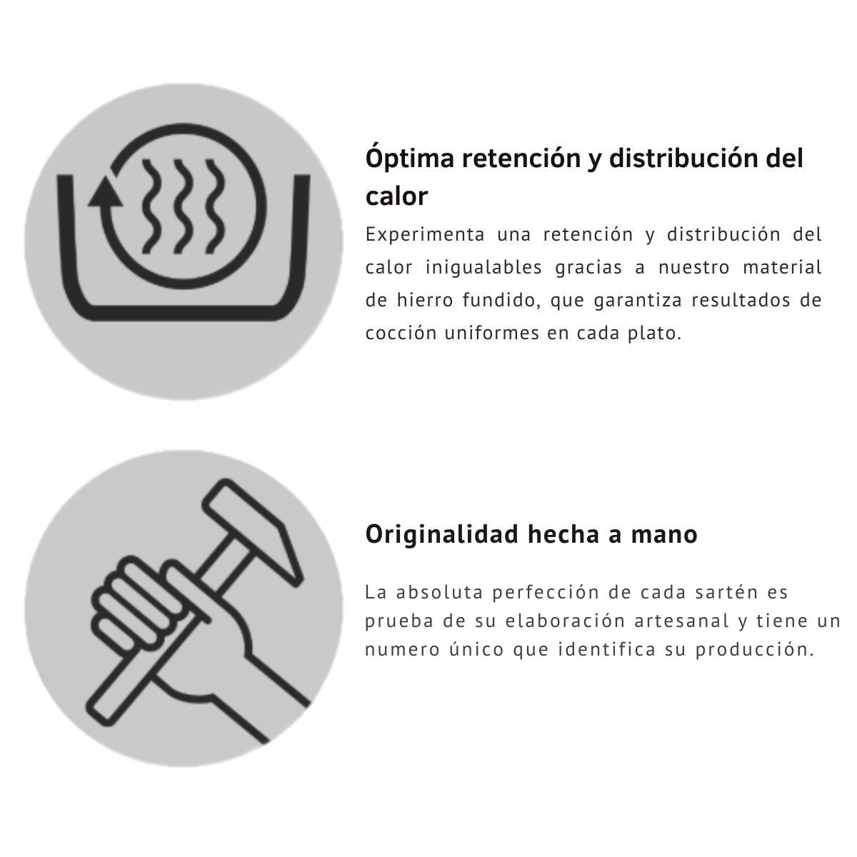- La gran retención y transmisión del calor del hierro, proporcionan unos resultados extraordinarios y muy sabrosos.