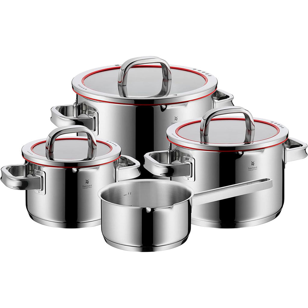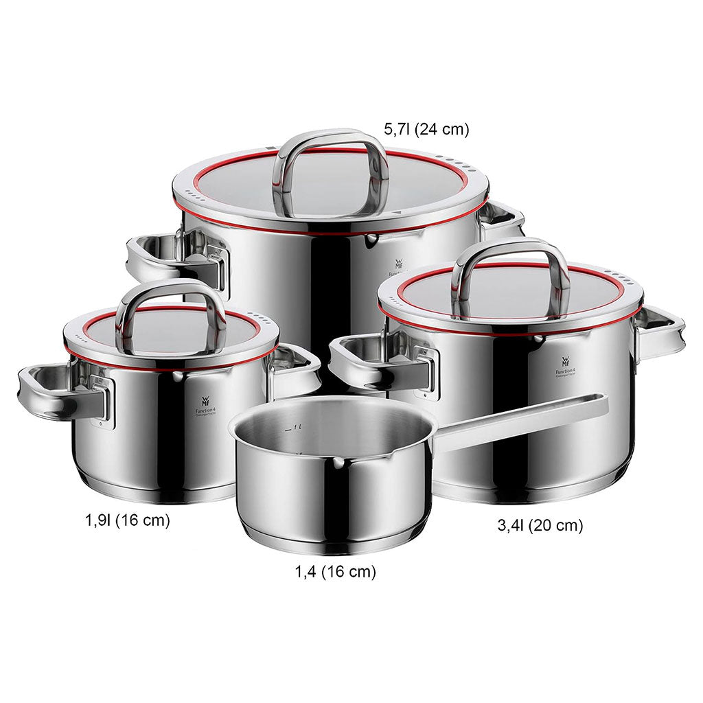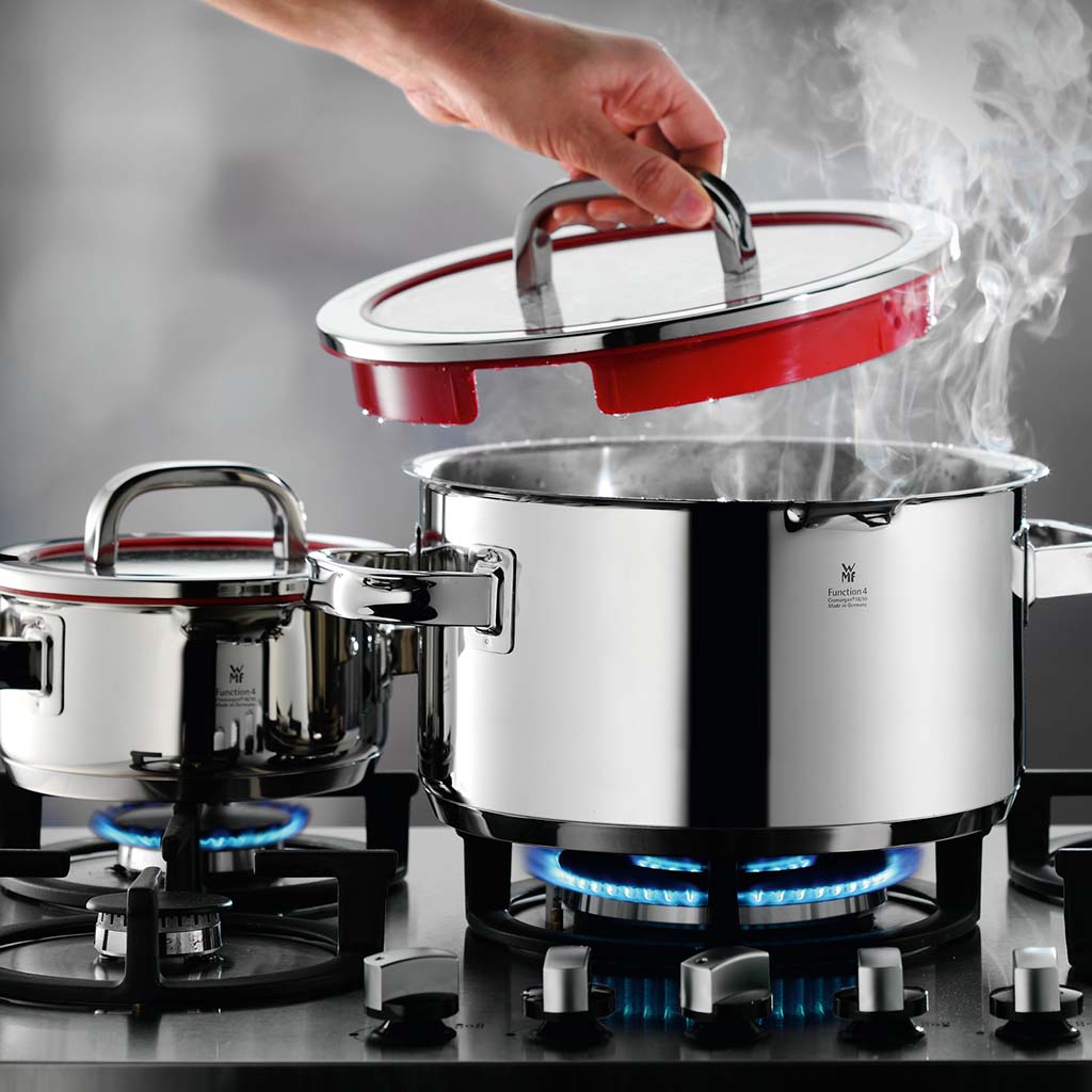 Das WMF Function 4-Kochgeschirrset besteht aus 4 Teilen von bester Qualität, die auf den neuesten Stand gebracht und aus dem besten Edelstahl der Marke hergestellt wurden. Mit avantgardistischem Stil und deutschem Design zeichnen sich die 3 Töpfe und der Kochtopf des Sets durch ihre hitzebeständigen Griffe und den Deckel mit 4 Positionen aus, sodass Sie auf effizienteste Weise kochen können.