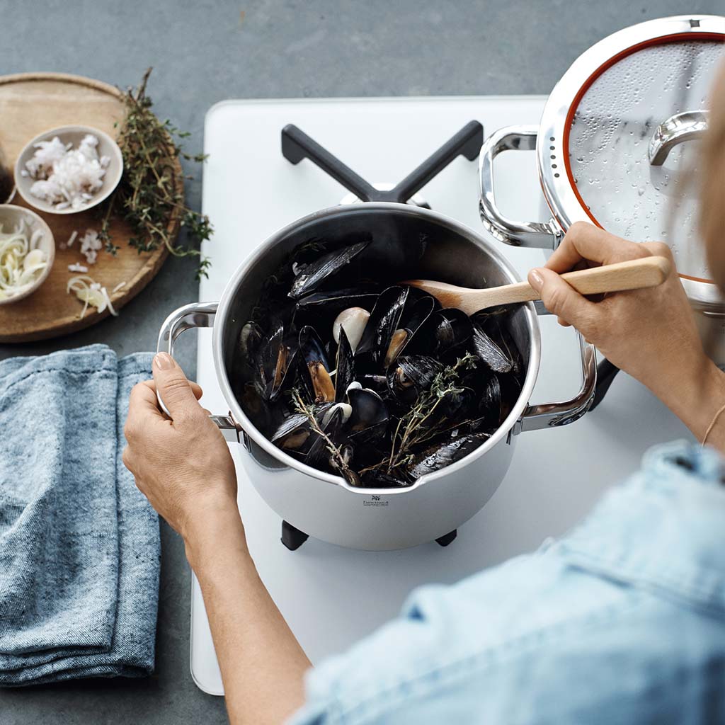 Marktführer für Haushaltswaren in Deutschland und weltweit eine Referenz, ist WMF ein Unternehmen, das 1853 in Geislingen (Deutschland) gegründet wurde und ursprünglich alle Arten von Metallartikeln herstellte. Mit heute fast 6000 Mitarbeitern verfügt WMF über 40 Niederlassungen weltweit und ist bekannt für die Qualität, Widerstandsfähigkeit und das hervorragende Design seiner Produkte. Aus WMF stammen Produkte wie der Schnellkochtopf.