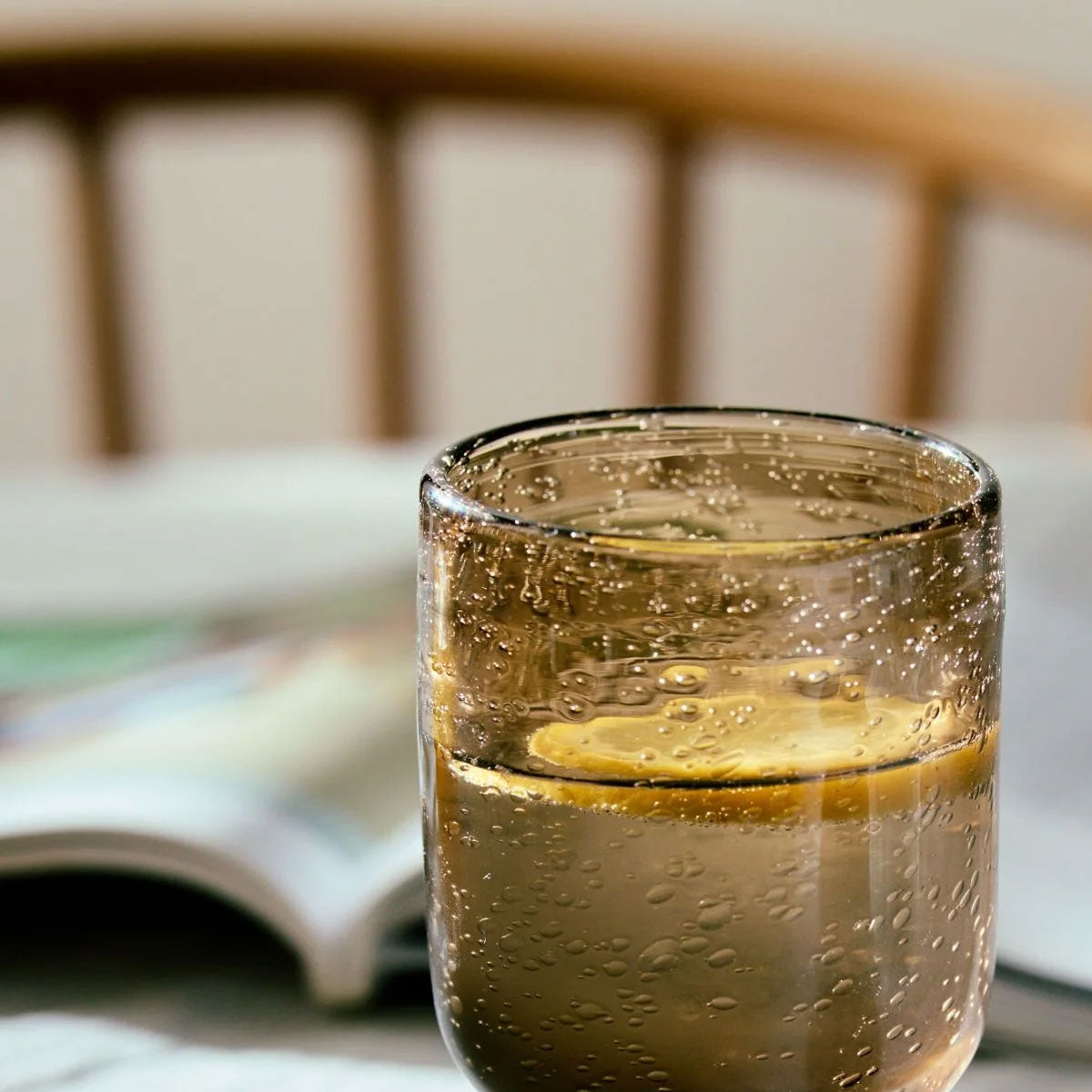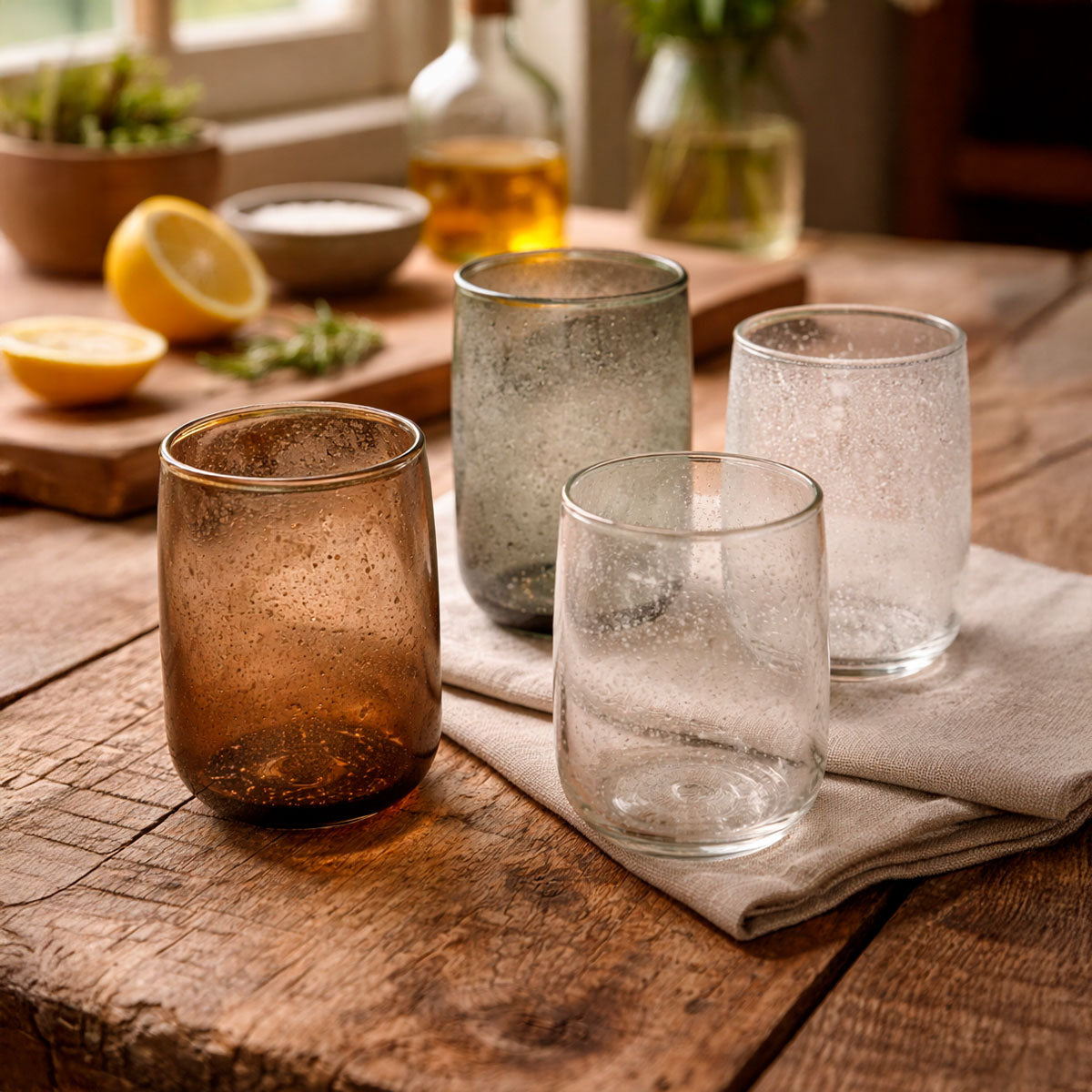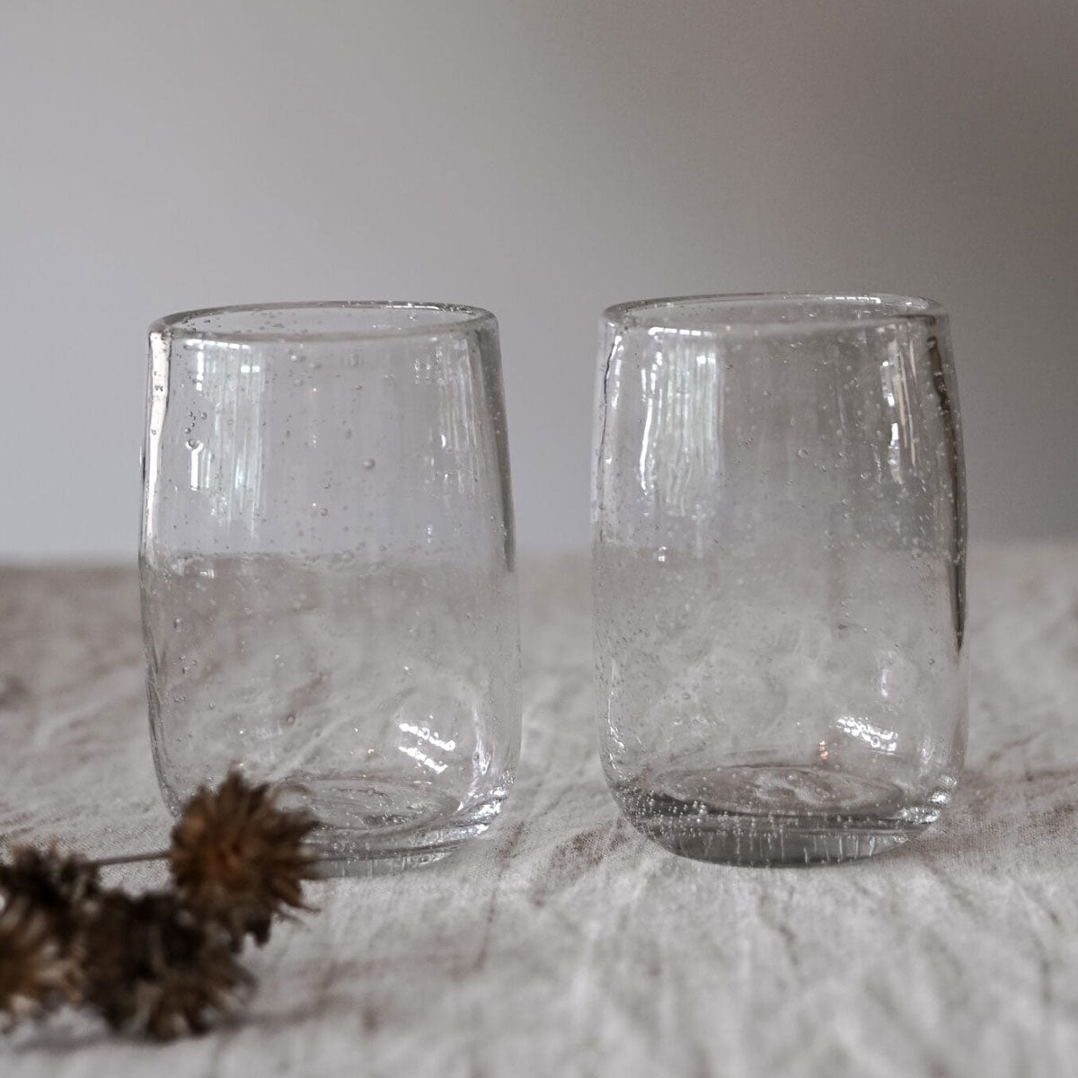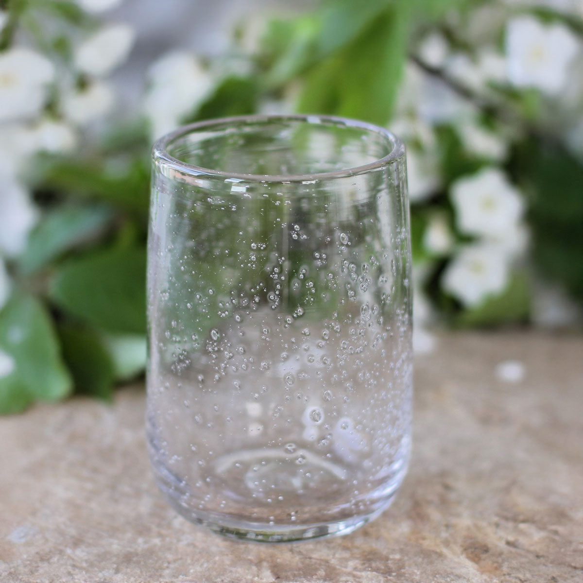 Es perfecto para completar tu cristalería. En este vaso de vidrio hecho a mano cada detalle cuenta. Sus burbujas forman parte del proceso artesanal y aportan un encanto especial, haciendo de cada vaso una pieza única.