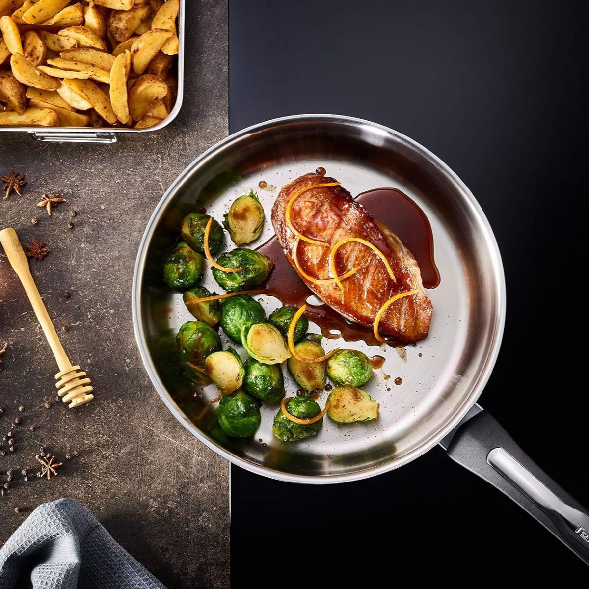 Die Emotion-Pfanne von Tefal zeigt, was eine hochwertige Edelstahlpfanne im Alltag leisten kann: Präzision, Geschmack und perfekte Textur. Hergestellt aus 18/10 Edelstahl und ohne Antihaftbeschichtung ist diese Pfanne ideal für alle, die gerne mit Kontrolle kochen, anbraten, bräunen und ablöschen, um Gerichte mit Charakter zu kreieren.