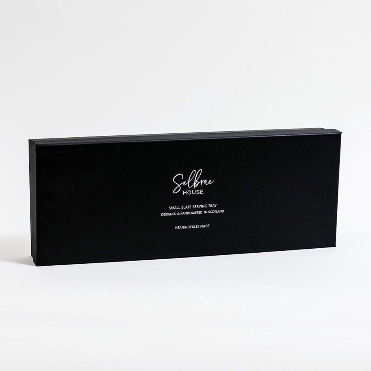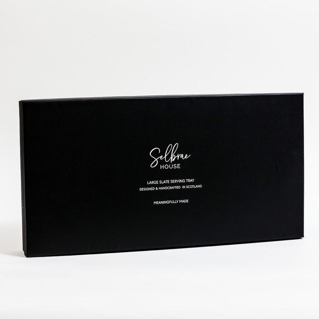 Dieses rechteckige Schiefertablett wird in einer hochwertigen schwarzen Box geliefert, die es zu einem außergewöhnlichen Geschenk macht und sich auch hervorragend zur Aufbewahrung eignet. Es ist lebensmittelecht und hilft, die Temperatur von Speisen und Getränken zu halten. Es vereint elegantes Design mit größter Funktionalität und Vielseitigkeit. Du kannst es sogar für das Servieren von Getränken oder Kaffee verwenden, denn die Textur des Schiefers sorgt dafür, dass Gläser beim Tragen nicht verrutschen.