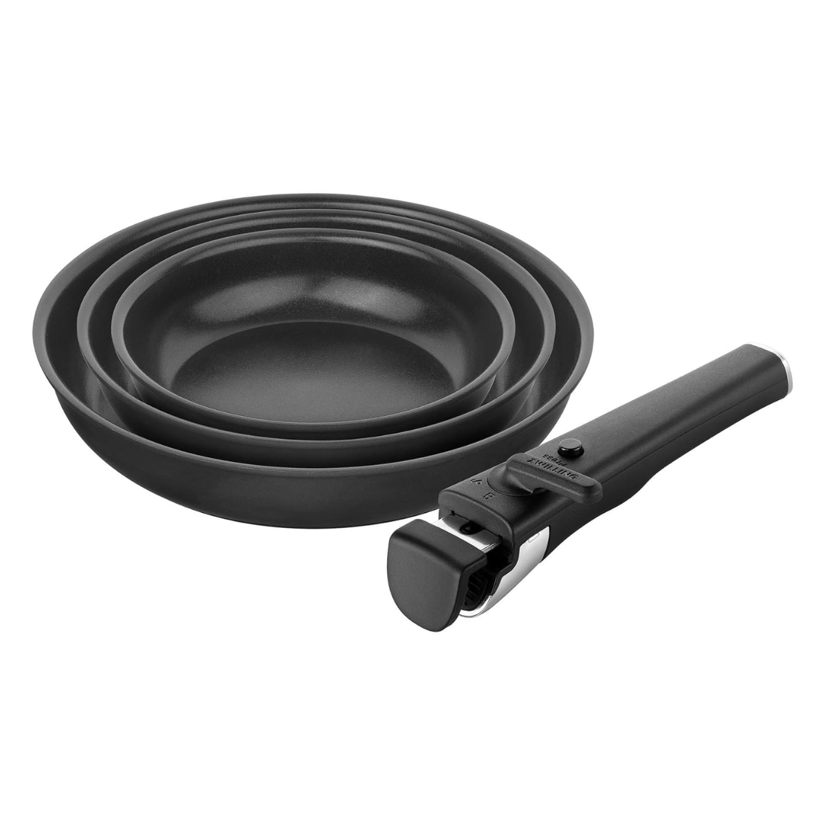 Das Set aus 3 Keramikpfannen mit abnehmbarem Griff Unlock Zwilling ist ein komplettes 4-teiliges Set, mit dem du deine Küche ausstattest und gleichzeitig Platz sparst. Das Set enthält 3 Keramikpfannen mit 20, 24 und 28 cm sowie einen abnehmbaren Griff, der sie sehr vielseitig macht, sogar für die Verwendung im Ofen. Ihre mit Titan verstärkte Keramikbeschichtung garantiert eine hervorragende Antihaftwirkung, damit du gesund, bequem und ohne Anhaften kochen kannst. Mit diesem Set erhältst du maximale Leistung bei minimalem Platzbedarf.