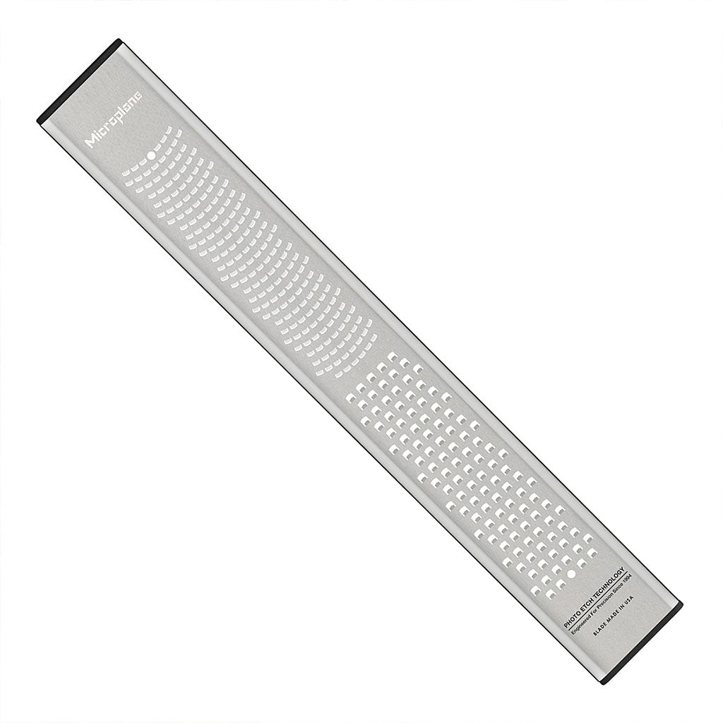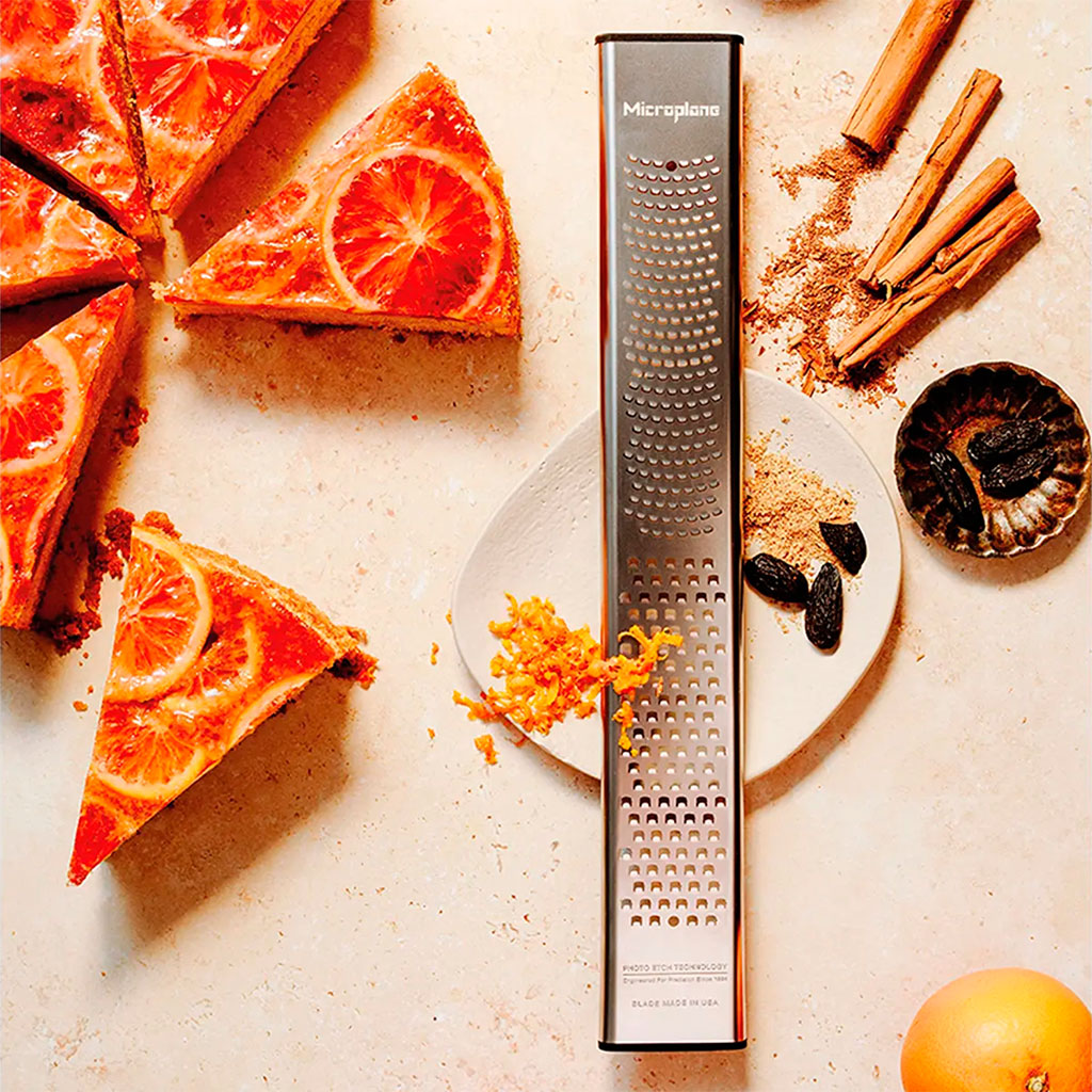 führendes Unternehmen für hochwertige Schneid- und Reibewerkzeuge. Der Zester hat sich zu einem unverzichtbaren Werkzeug in der modernen Küche entwickelt, und dieses Modell mit doppelter Klinge ist ein echtes Wunder, das dir ein Leben lang erhalten bleibt.WICHTIG! Es gibt viele Nachahmungen des Zesters, aber der von Microplane ist zweifellos das Original, und wenn du ihn ausprobierst, wirst du verstehen, dass er unvergleichlich ist.