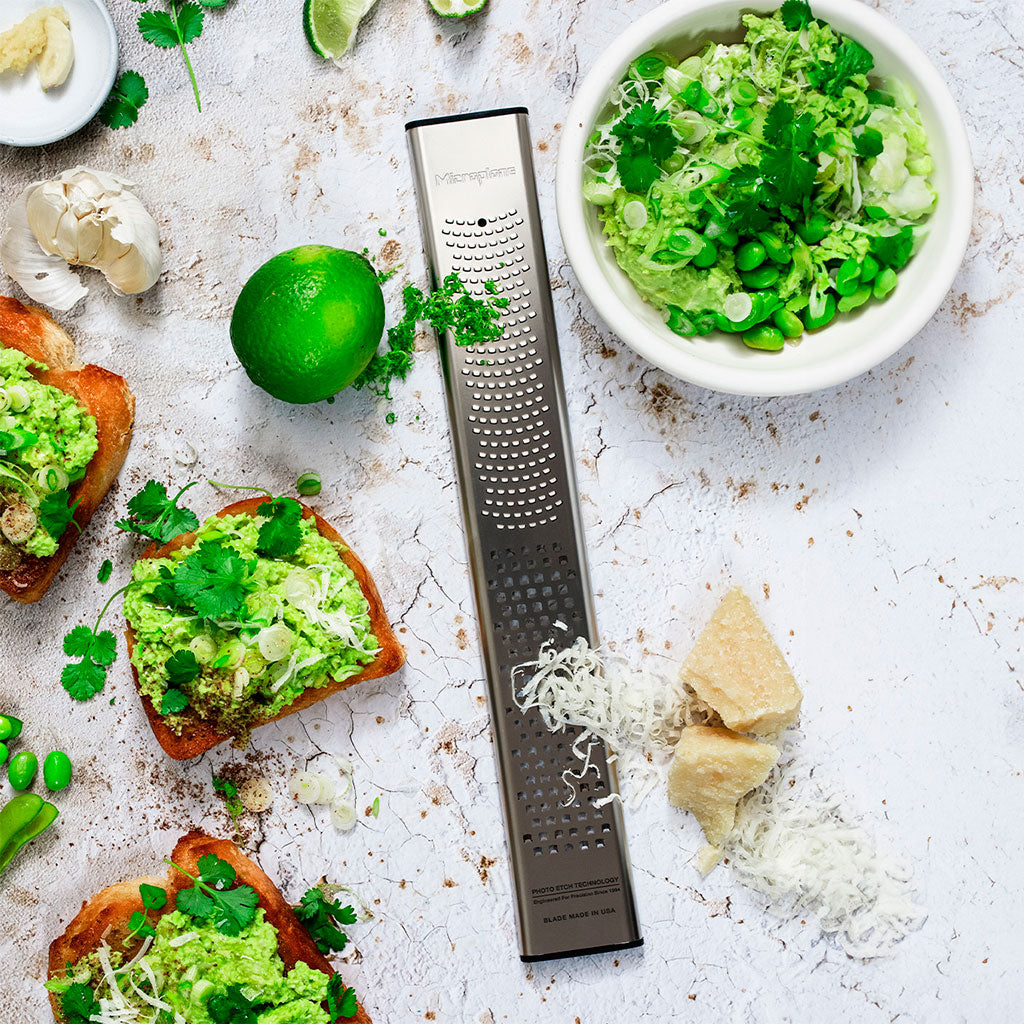 • Der doppelte Zester von Microplane, komplett aus Edelstahl.
