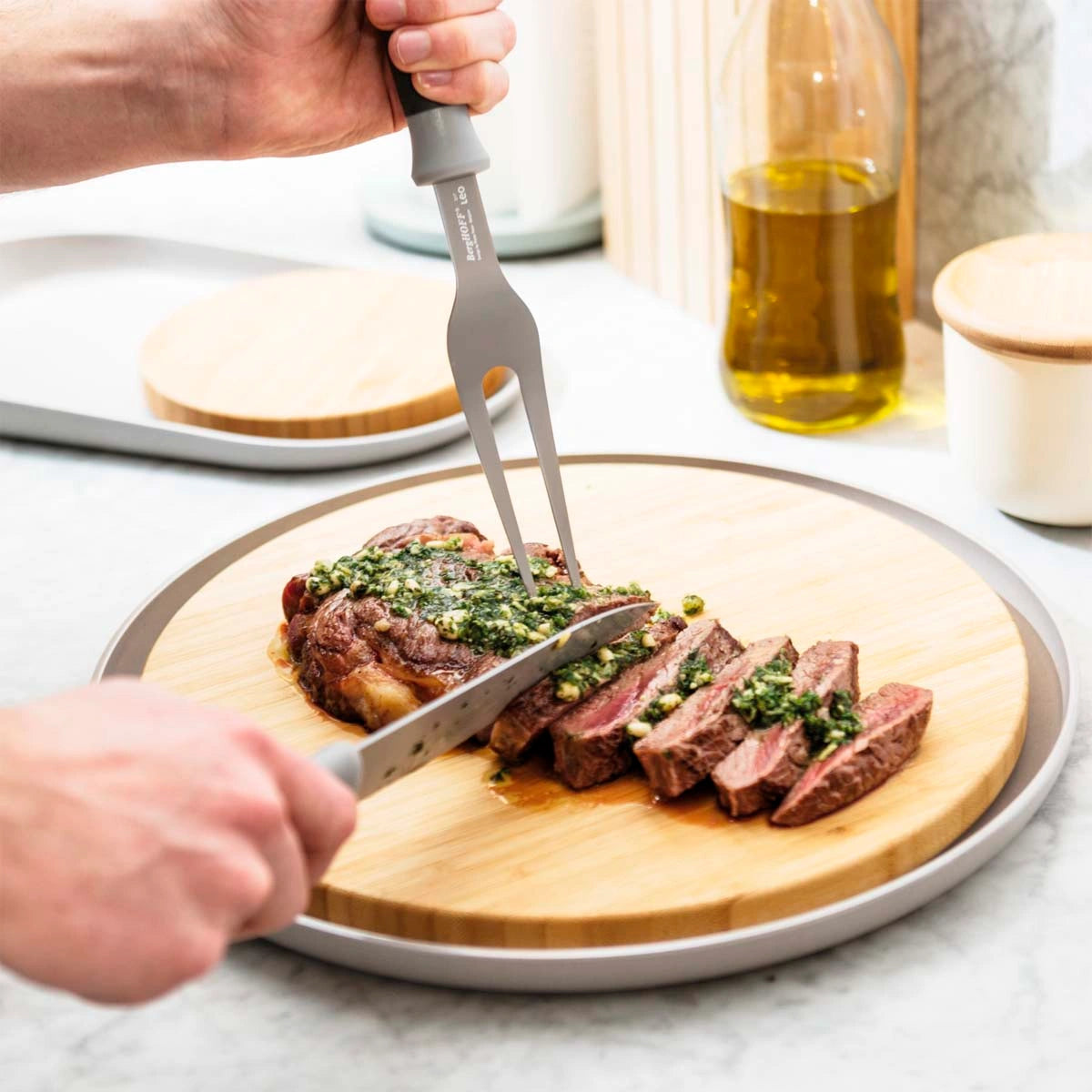 Als echter Fleischliebhaber solltest du dieses 2-teilige Tranchier-Set von Berghoff unbedingt zu Hause haben. Mit welcher Fleischsorte wirst du dein neues Set einweihen – mit einem Rinderentrecôte, einem Lammsteak oder zartem Iberico-Secreto?