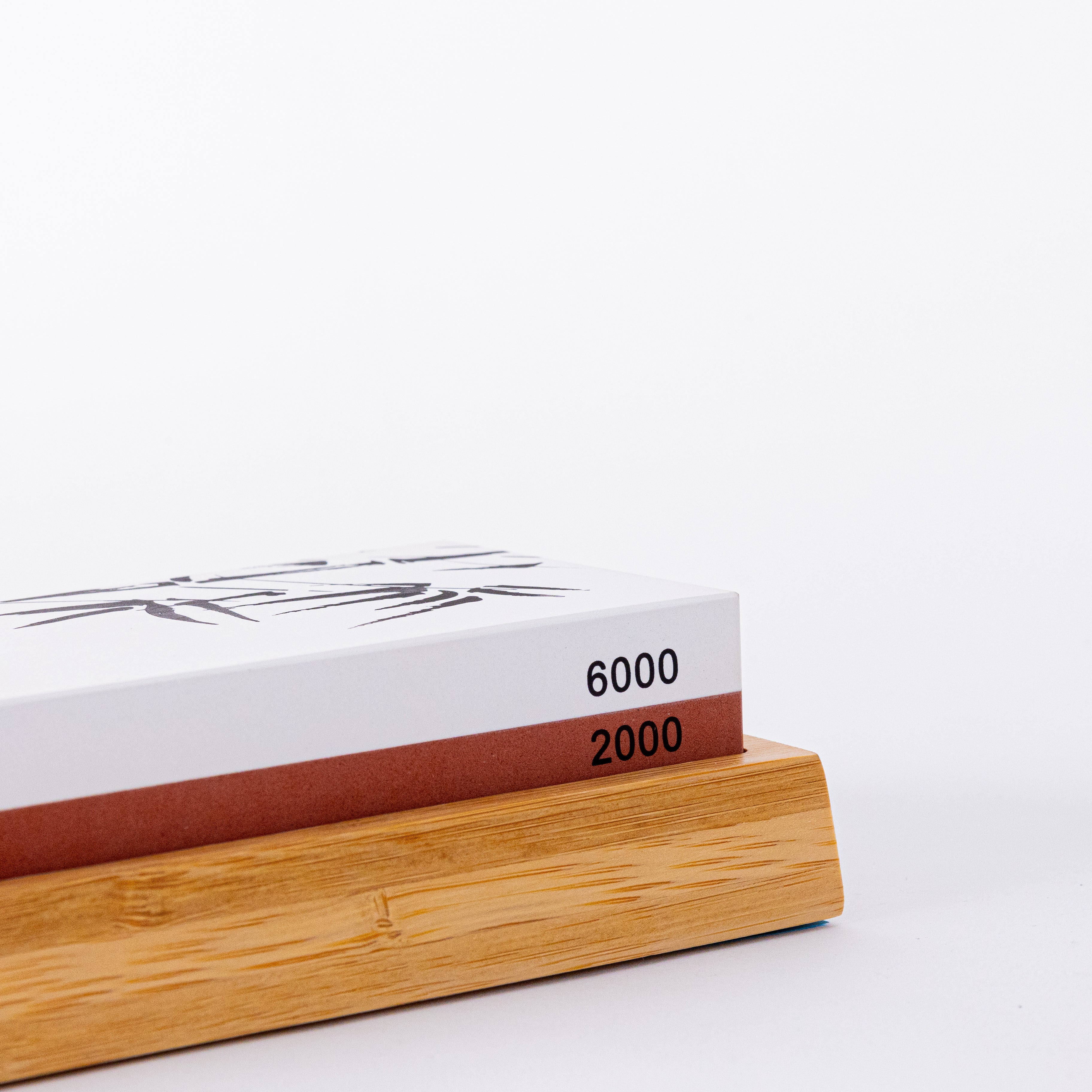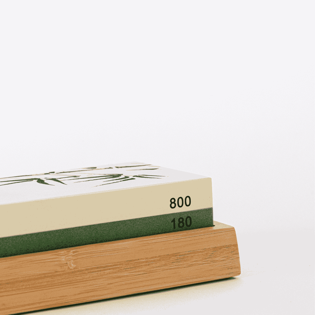 Die Bambusbasis mit rutschfestem Gummi garantiert, dass der Stein während des Schärfens nicht verrutscht. Dank der Höhe des Steins und der rutschfesten Halterung ist genügend Platz vorhanden, um die Messer richtig zu halten, ohne mit den Händen die Basis zu berühren – so hast du keinerlei Probleme.