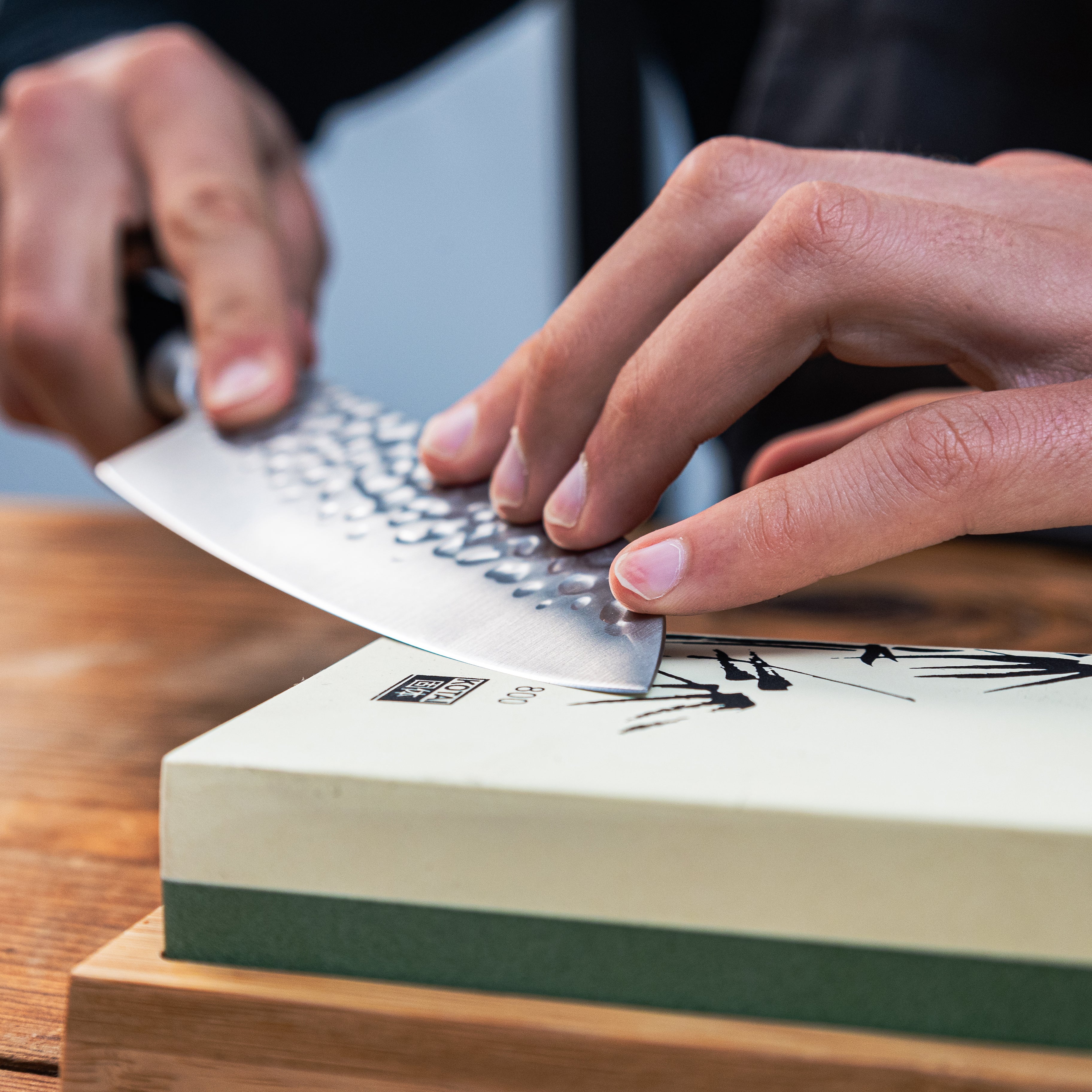 Die grobe Körnung (180 oder 2000, je nach Modell) eignet sich zum Vorschleifen und zum Wiederherstellen der Schneide stumpfer oder stark abgenutzter Messer. Sobald die Schneide wiederhergestellt ist, sorgt die feine Körnung (800 oder 6000, je nach Modell) für den perfekten Schliff all deiner Messer.