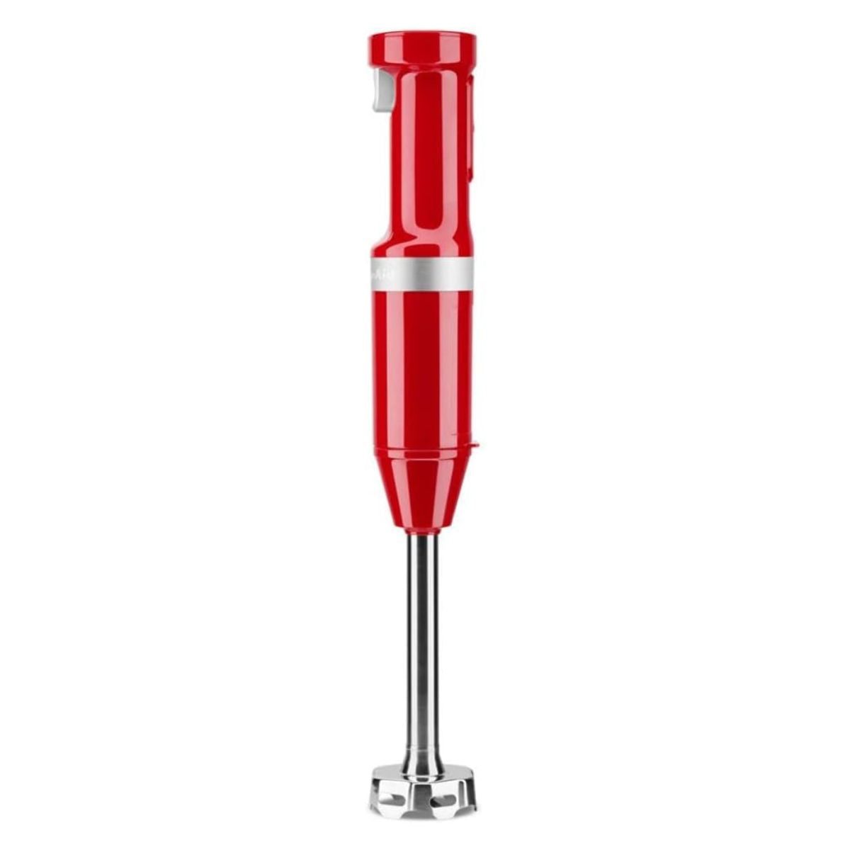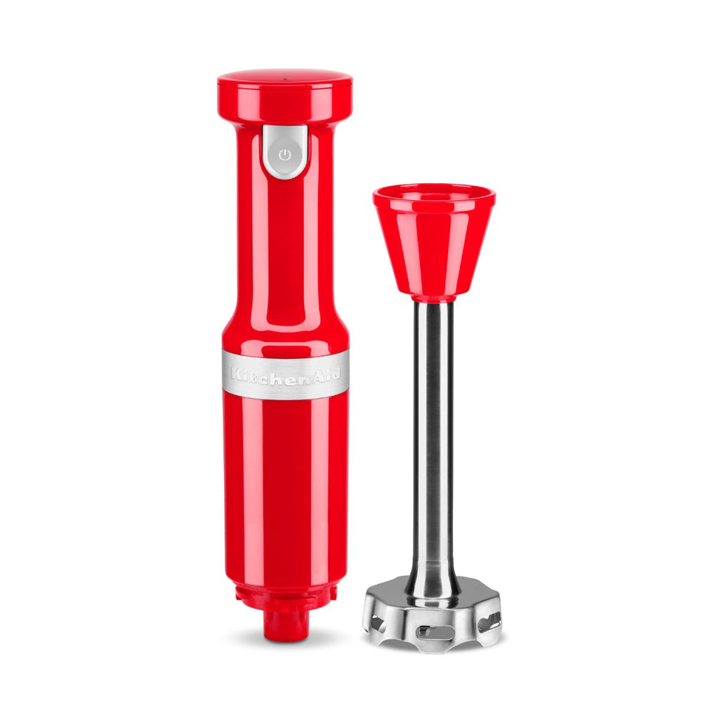 ¿Quieres preparar tus recetas sin in cables ni enchufes? Con la Batidora de mano inalámbrica roja KitchenAid lo vas a tener muy fácil. Con su elegante diseño y en el clásico color rojo de la marca, podrás batir, mezclar, emulsionar, hacer batidos, postres, salsas, o purés de forma muy rápida, cómoda, ¡y sin que te limiten los cables! Esta batidora de brazo inalámbrica y portátil, con su cuchilla de acero inoxidable de 4 puntas, se va a convertir en tu mejor ayudante en la cocina.