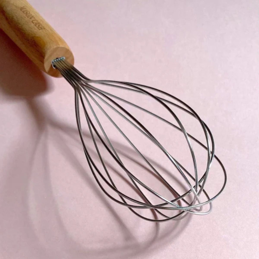 • Schneebesen aus Edelstahl und Griff aus Holz.