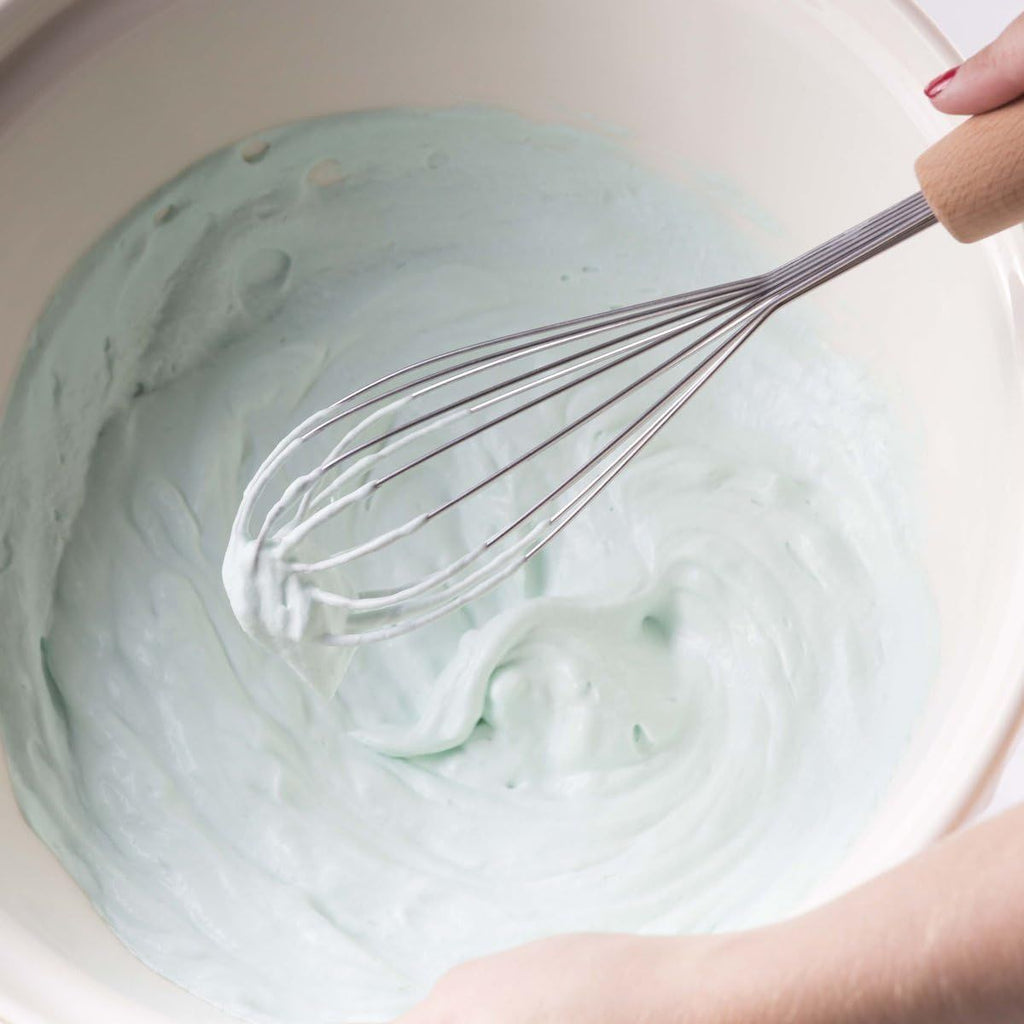 In diesem Fall kannst du mit dem Edelstahl-Schneebesen an einem Ende Eier, Cremes und Mischungen schlagen. Das andere Ende, das aus Holz besteht, dient als Zitronen-, Limetten- und Zitruspresse.