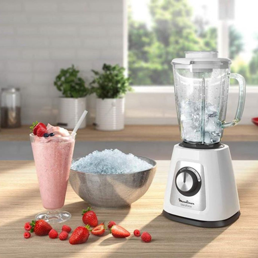 Der Standmixer Blendforce Moulinex ist der vielseitige Mixer, der in deiner Küche nicht fehlen darf, um sowohl kalte als auch warme Rezepte zuzubereiten. Die thermoresistente Kapazität des Kruges dieses Mixers macht ihn zum perfekten Partner, sogar zum Eiszerkleinern, damit du köstliche hausgemachte Granitas genießen kannst.