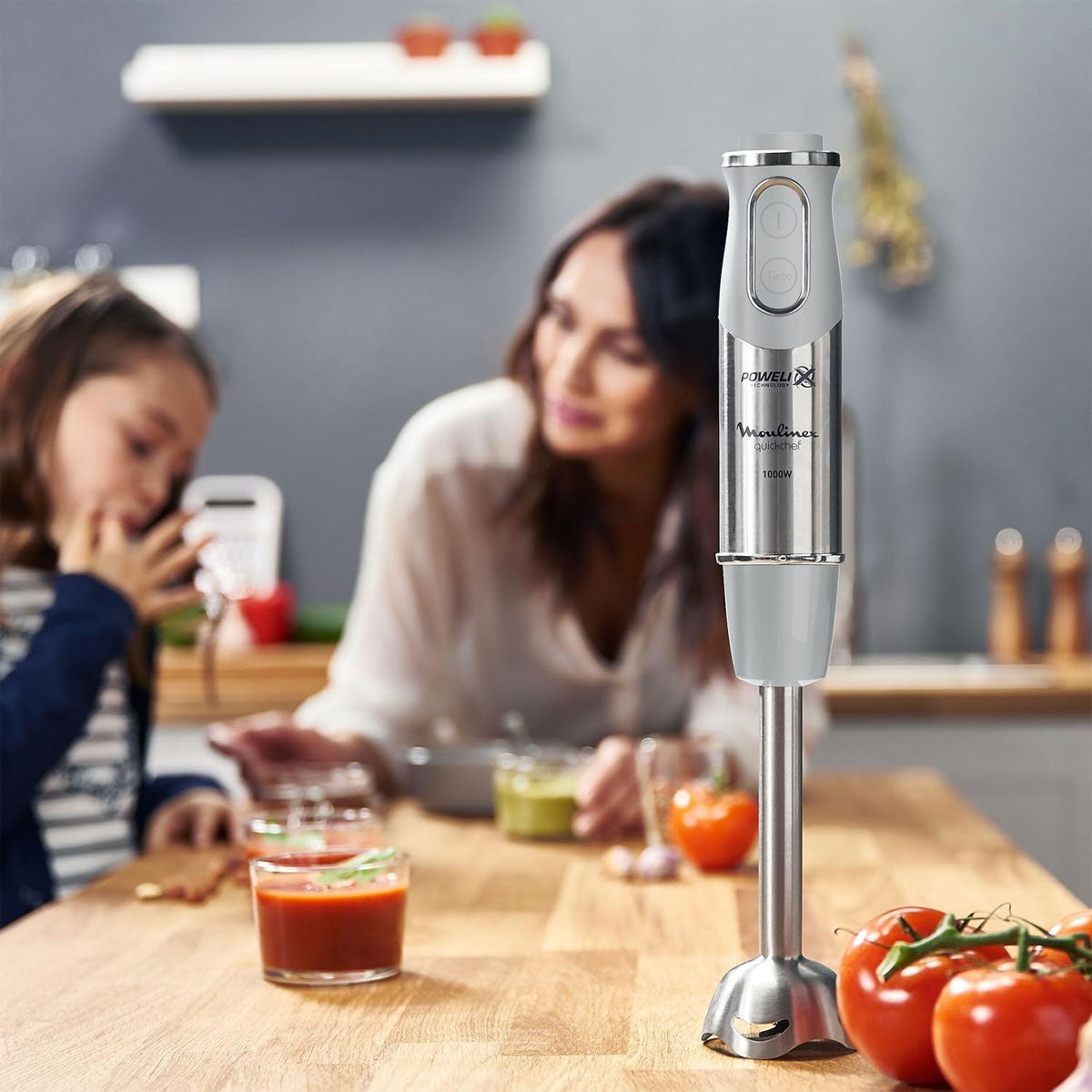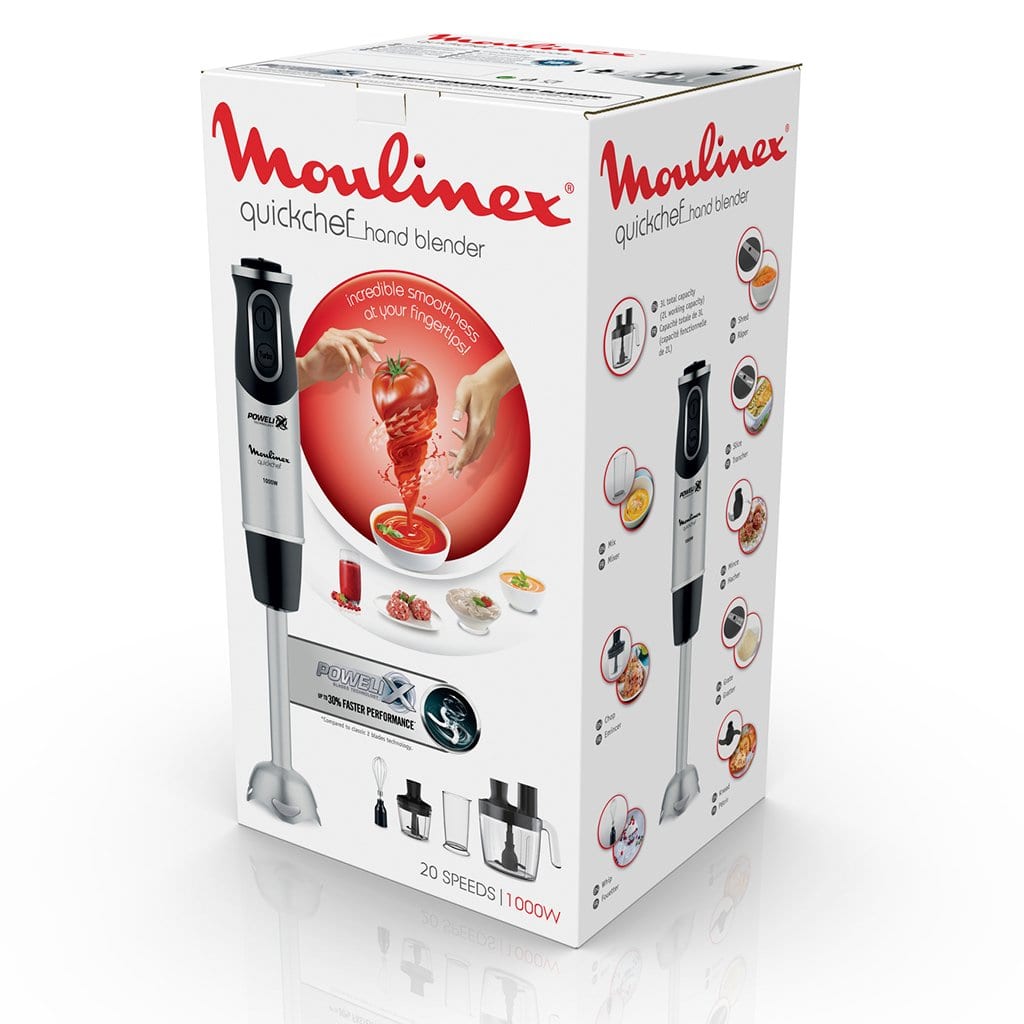 Der Quickchef Stabmixer von Moulinex ist perfekt, denn du erhältst optimale Leistung ohne Anstrengung. Bereite im Handumdrehen ganz einfach eine große Vielfalt an Gerichten zu. Außerdem ist es ein äußerst vielseitiger Mixer – du kannst sowohl Cremes und Saucen zubereiten als auch Gemüse, Obst oder härtere Zutaten zerkleinern.
