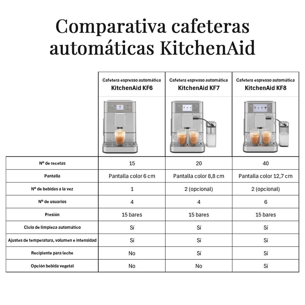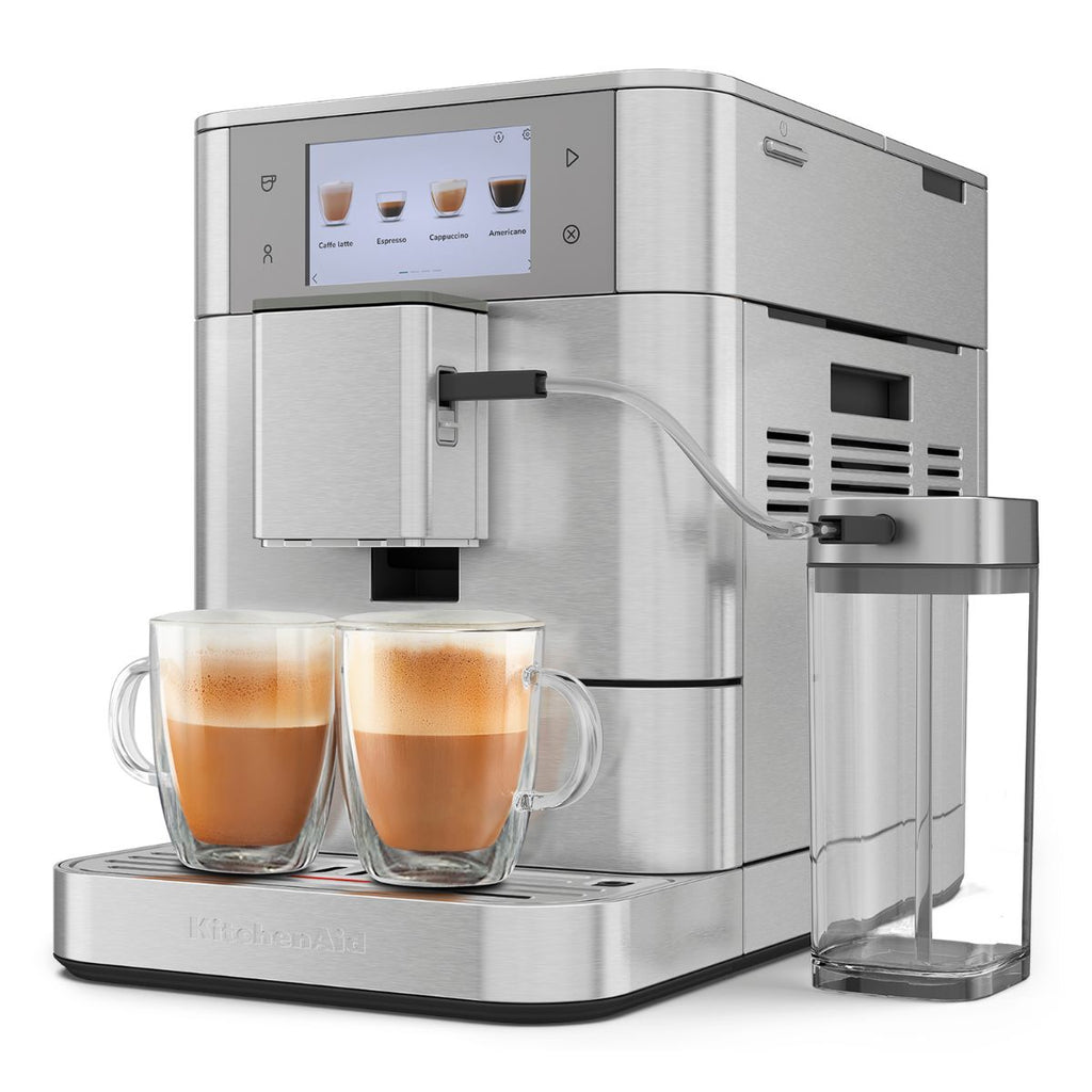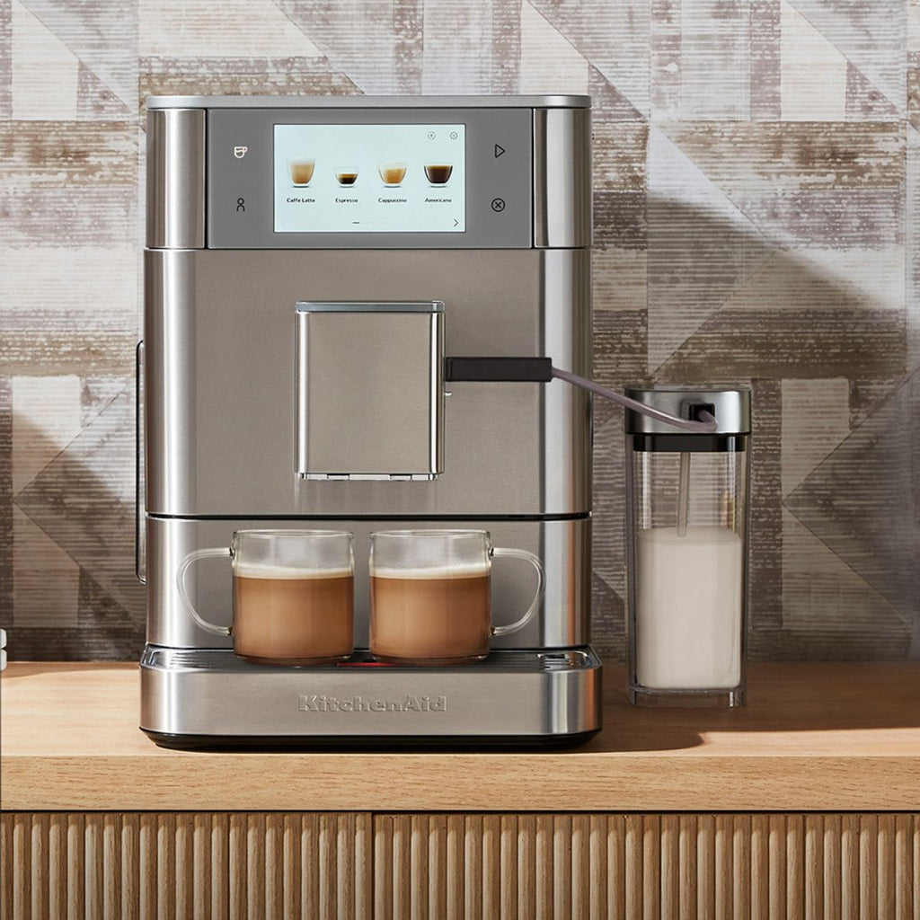Mit über 40 voreingestellten Rezepten ist die KitchenAid KF8 Superautomatische Espressomaschine mit Milchbehälter der ultimative und leiseste Weg, all deine Lieblings-Espressogetränke auf Knopfdruck zu genießen – ganz einfach! Eine Haushaltskaffeemaschine, die dir schnelle und professionelle Ergebnisse garantiert, so aromatisch, intensiv und köstlich wie im Lieblingscafé. Vom Bohnenbehälter bis zur Tasse: In wenigen Sekunden bekommst du deinen perfekten Kaffee, mit herrlichem Milchschaum oder dem pflanzlichen Drink deiner Wahl.
