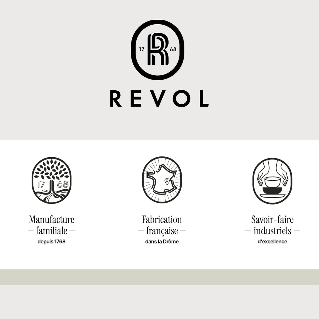 Nummer 1 in der Herstellung von hochwertigem Porzellan und eine Referenz in der gehobenen Gastronomie, stellt Revol alle seine Produkte in Frankreich her, in seiner Fabrik im Rhonetal. Ihr Herstellungsprozess verbindet einen hohen Innovationsgrad mit viel handwerklicher Arbeit, um einzigartige Stücke zu schaffen, die eine spektakuläre Leistung in der Küche bieten.