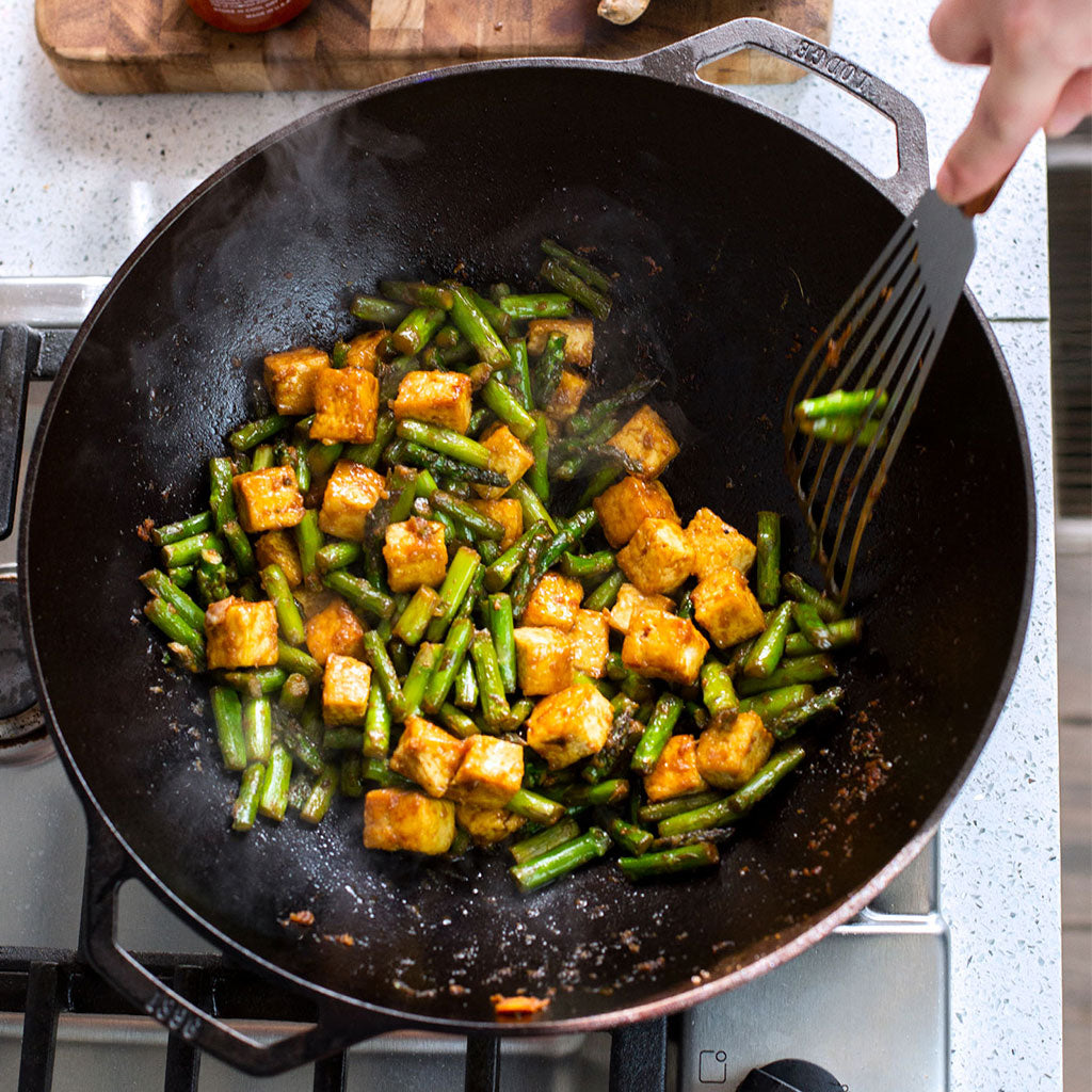 Beim Kochen im Wok müssen Sie das Gericht nur langsam aufheizen, damit sich die Hitze gleichmäßig im gesamten Stück verteilt. Sie können mit dem Kochen beginnen, wenn der Wok sehr heiß ist, ohne dass Sie dies mit hoher Feuerkraft tun müssen, da Eisen die Wärme wunderbar speichert . Um es zu reinigen, lassen Sie es zunächst abkühlen; Waschen Sie es mit einem nicht scheuernden Schwamm und Spülmittel und ölen Sie die Innenfläche leicht ein, um Rost vorzubeugen. Für eine optimale Konservierung empfiehlt es sich, es stets an einem trockenen Ort aufzubewahren.