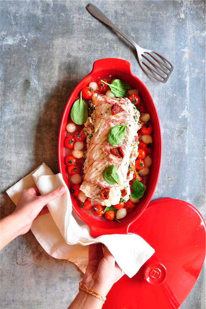 Cod en papillote with ricotta, spinach and sun-dried tomatoes
