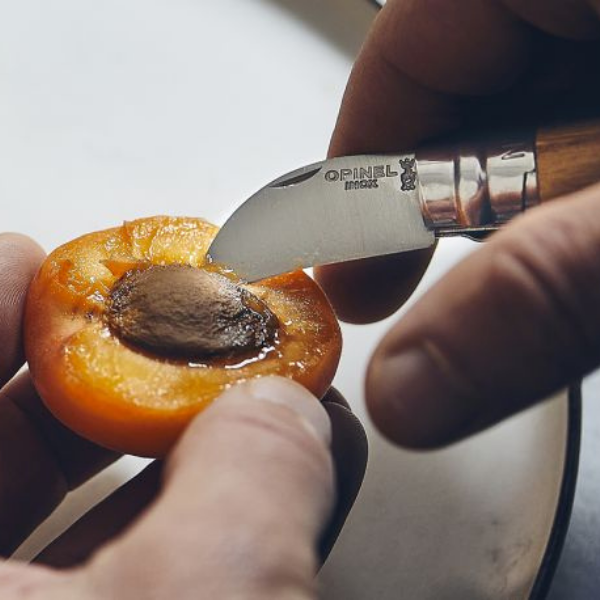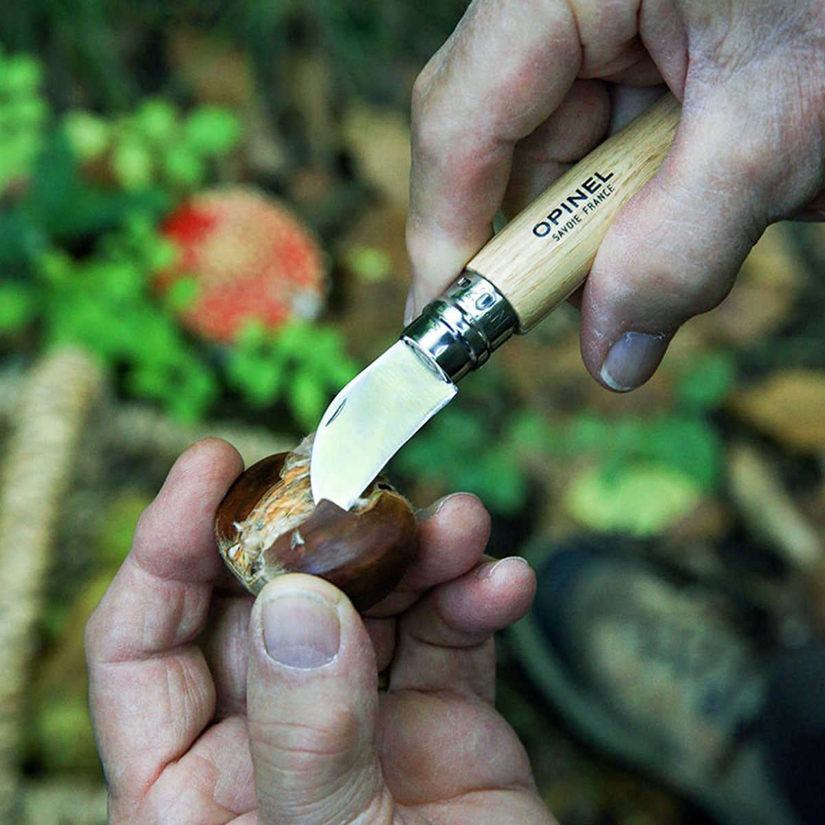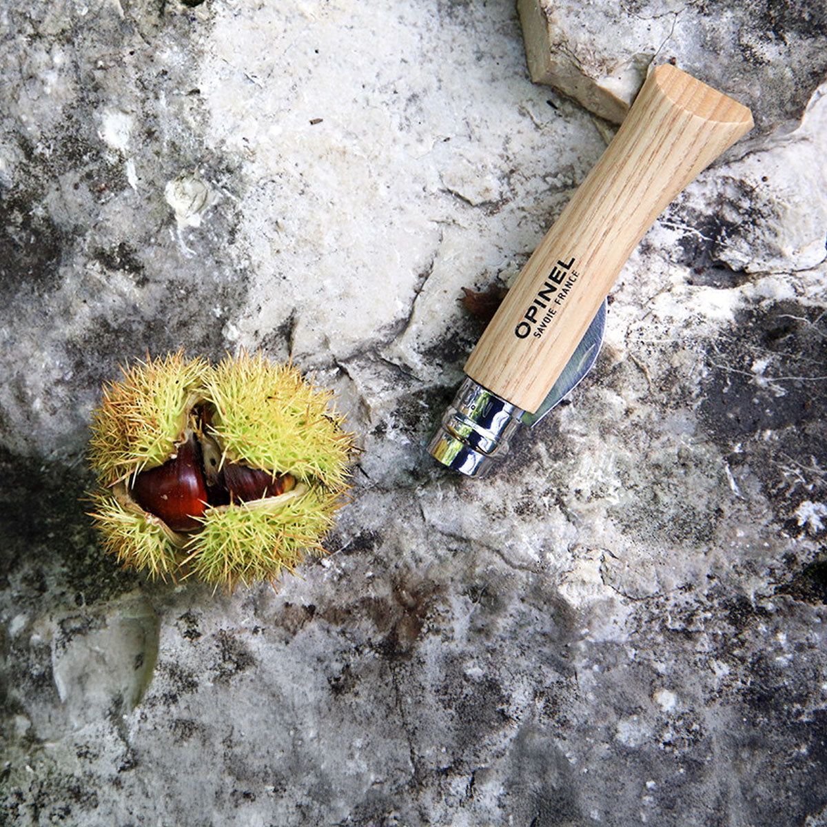 This small but great knife is the perfect tool to accompany roasting. A gem for chestnuts, garlic, small fruits, or olives! Its short, sharp blade allows you to make the initial cut in the chestnut skin and open them comfortably when cooked. Its folding design makes it practical and safe, and like every good Opinel, it is made to last many years.