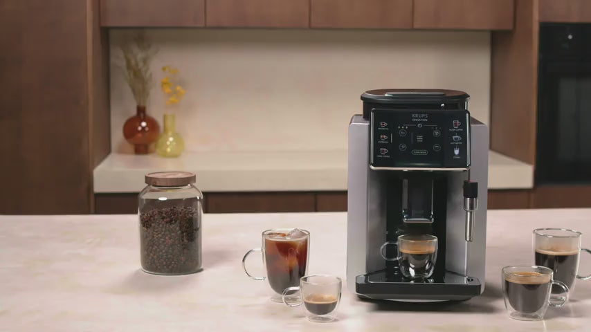 The Krups Sensation super‑automatic espresso machine makes the hard stuff easy, so enjoying your perfect coffee is as simple as choosing your favourite cup and pressing a button. With its Barista Inside technology, the machine optimises every step of the coffee‑making process for a perfect, flavour‑packed result with the intensity you prefer. Its intuitive, visual touchscreen lets you enjoy aromatic ristretto, creamy latte or your favourite filter coffee without hassle.