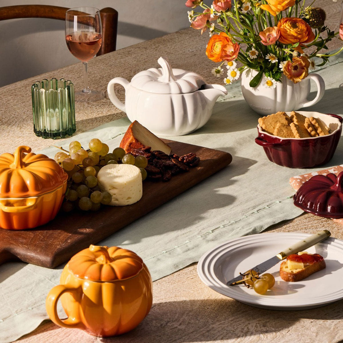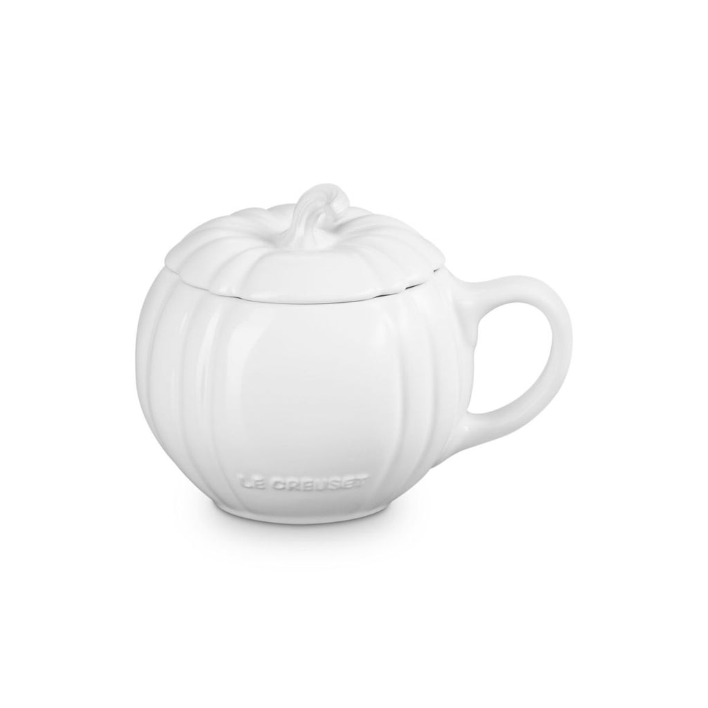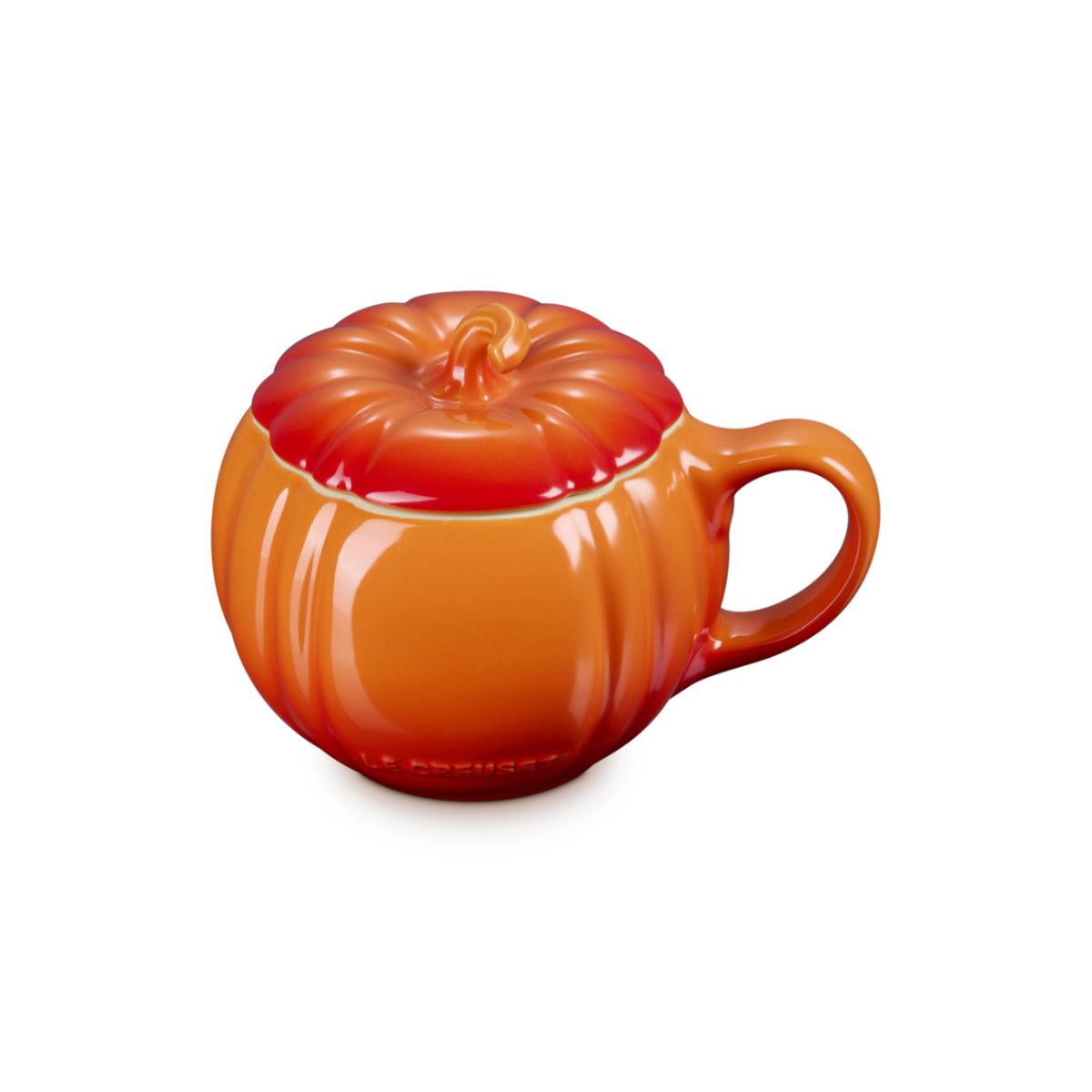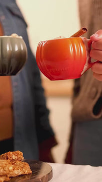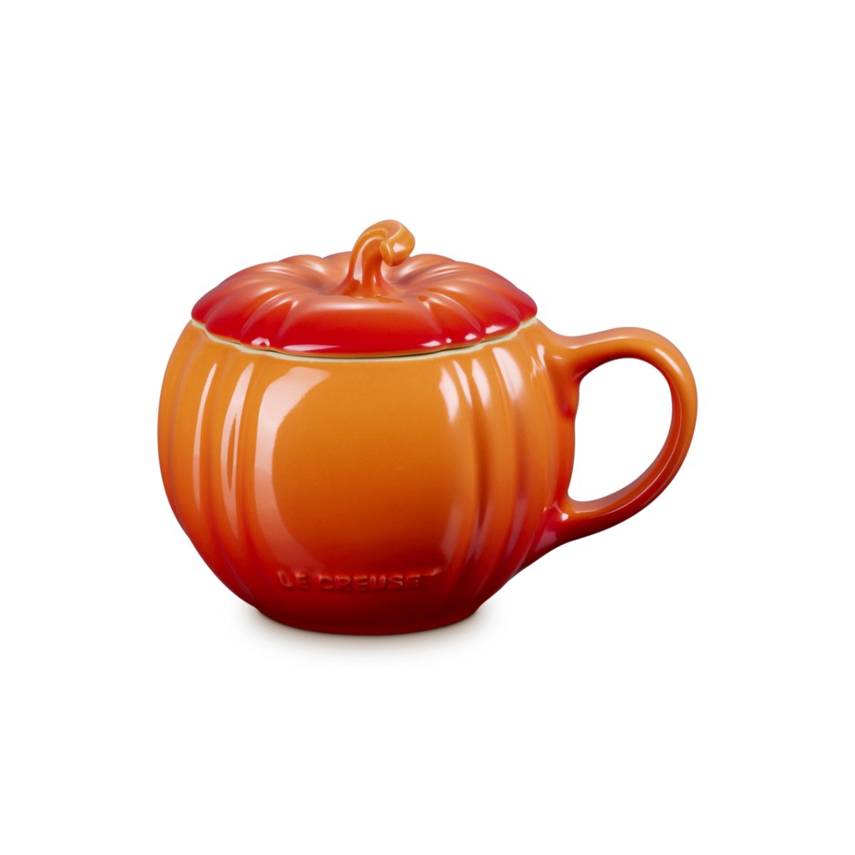 This pumpkin mug with lid made from stoneware is a delightful piece that expands Le Creuset's autumn collection and should definitely be among your favourites. Its design is full of detail, like the lid knob shaped like a pumpkin stem, the rounded form, and the perfect traditional Halloween pumpkin aesthetic.