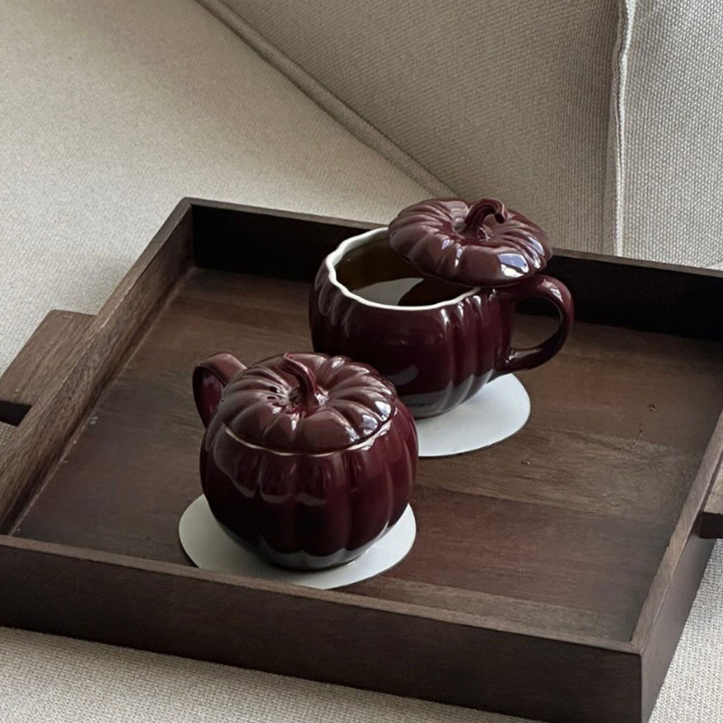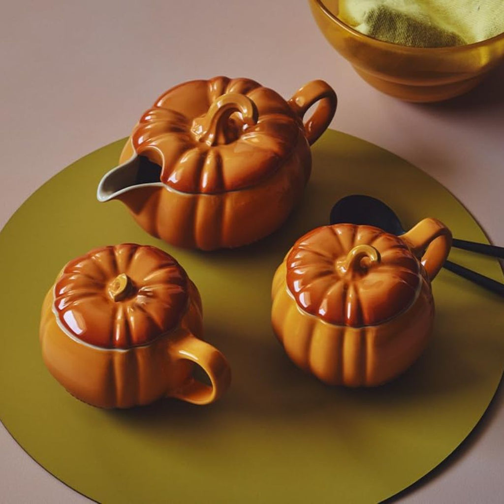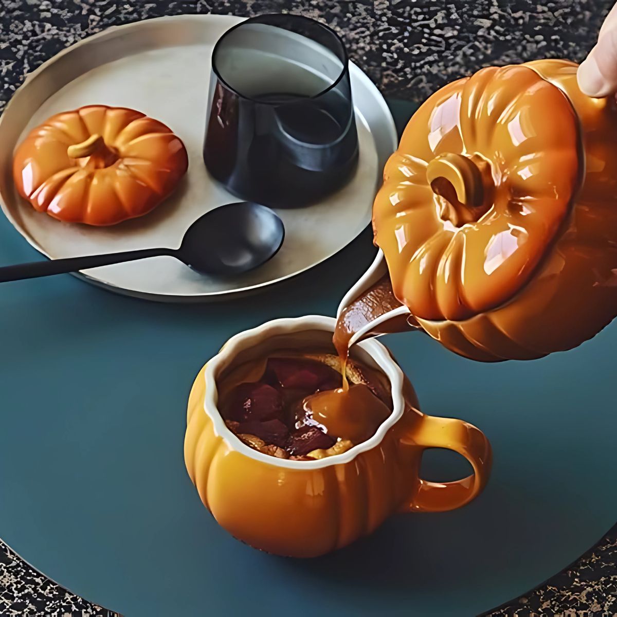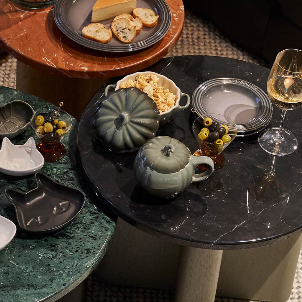 This pumpkin mug with lid made from stoneware is a delightful piece that expands Le Creuset's autumn collection and should definitely be among your favourites. Its design is full of detail, like the lid knob shaped like a pumpkin stem, the rounded form, and the perfect traditional Halloween pumpkin aesthetic.