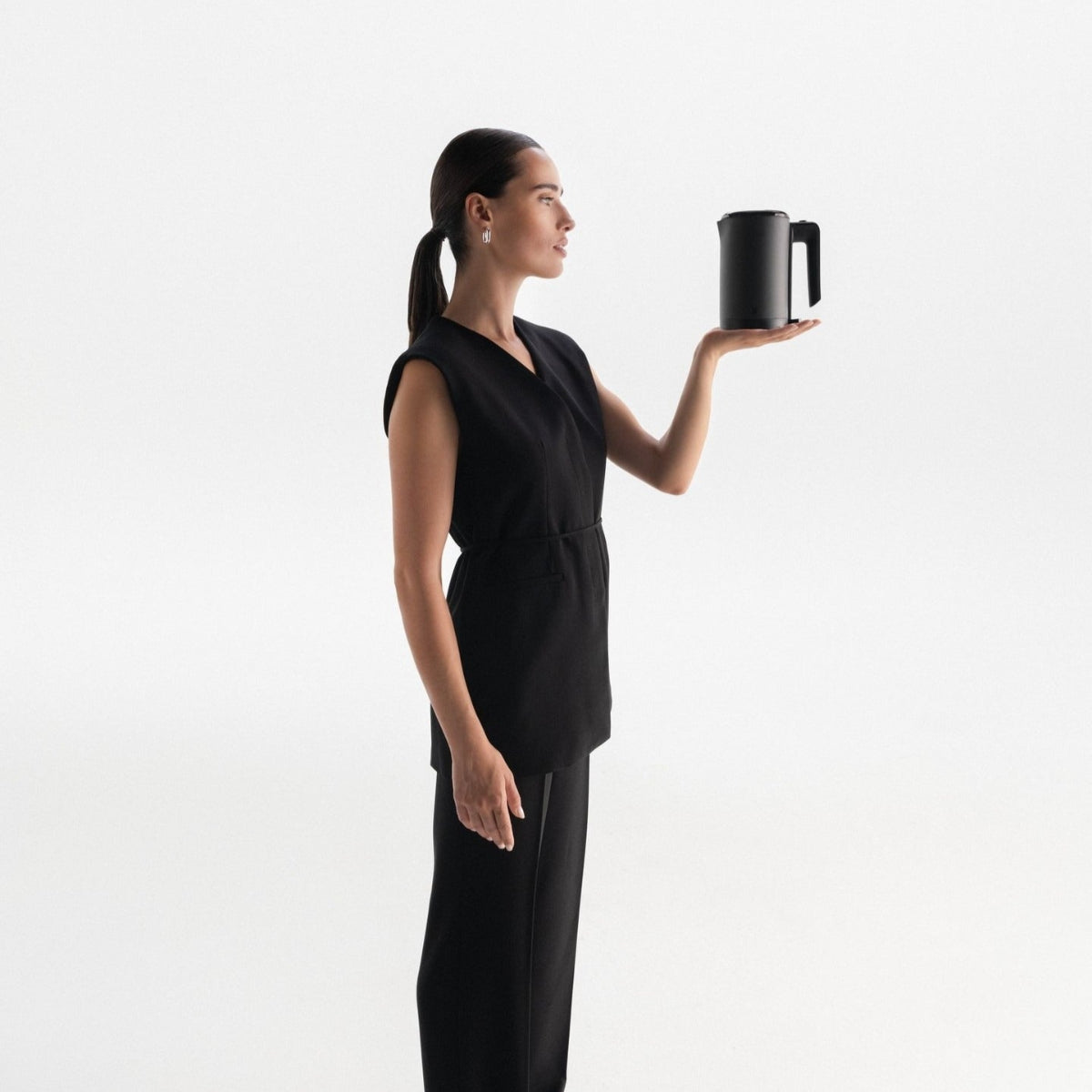 Thanks to its double-walled stainless steel body, the water stays hot for longer even when switched off or removed from the base, as the double wall functions like a thermos. The base dial allows you to adjust the temperature, increasing it by 5 degrees with each turn. Its minimalist, understated design gives the kettle a highly elegant look. The cool-touch glass lid features an integrated easy-open button in the aluminium handle.