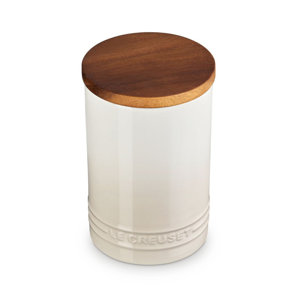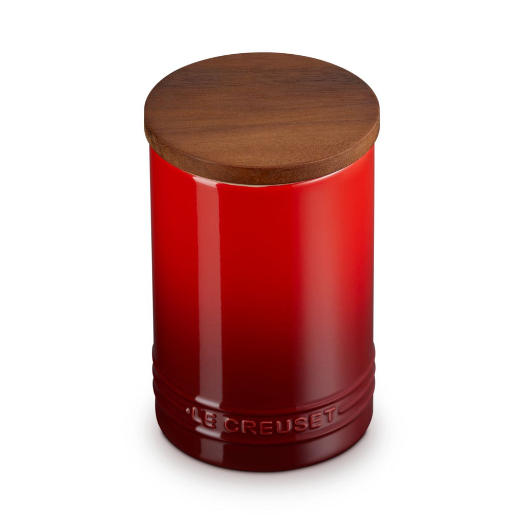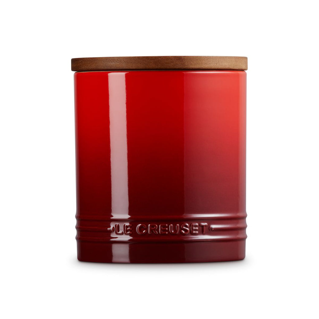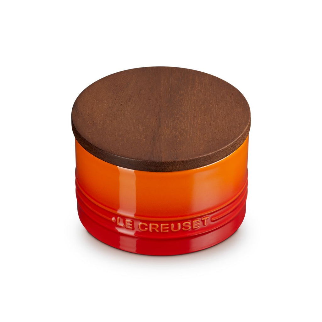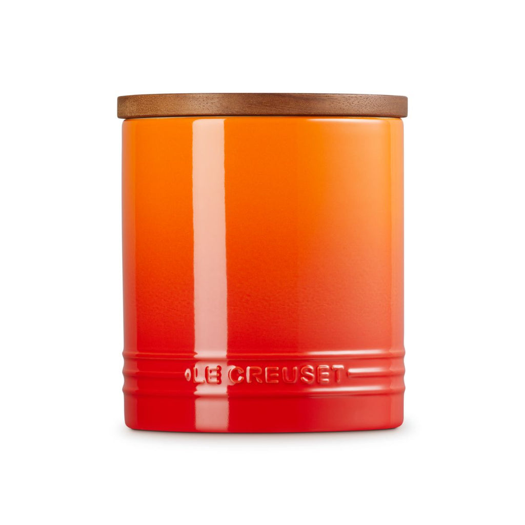 Elegant and versatile in all its sizes and colours, the new design of the Le Creuset Signature Ceramic Jar with Wooden Lid will win you over. This stoneware jar with wooden lid is highly functional. Thanks to the silicone seal on the lid, it is perfect as a storage container with an airtight closure. It’s great both for storing dry ingredients in the kitchen cupboard and for bringing sugar, salt, sauces or breadsticks to the table. Choose your size and colour – or mix and match to organise your kitchen in the most elegant way!