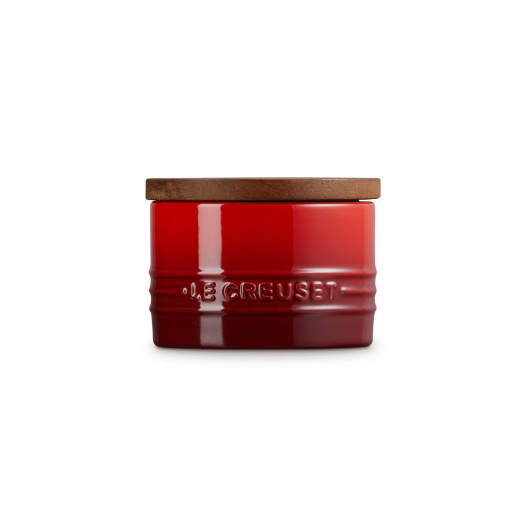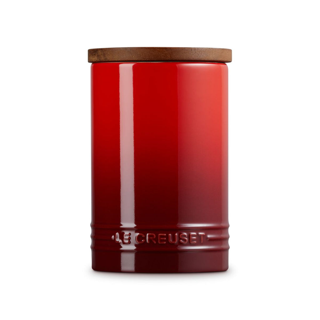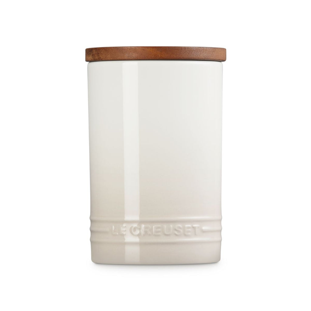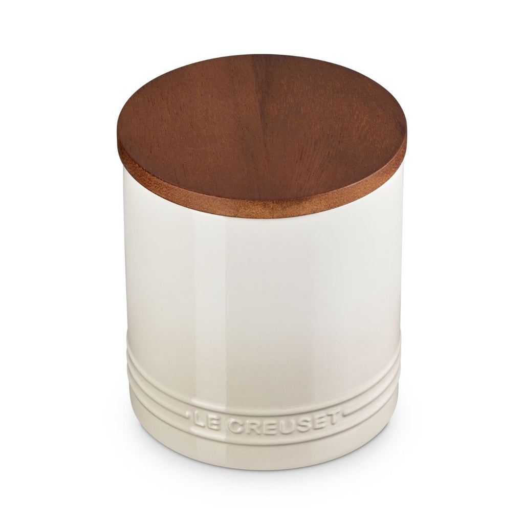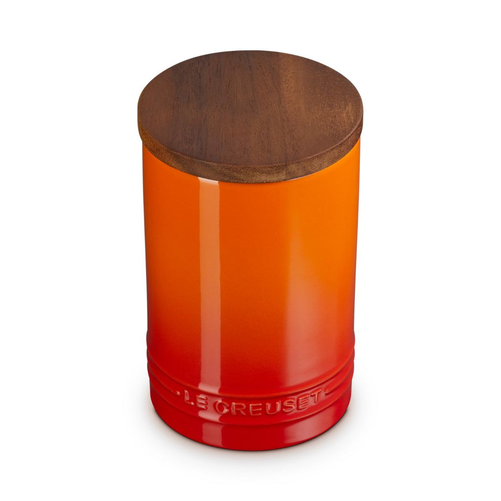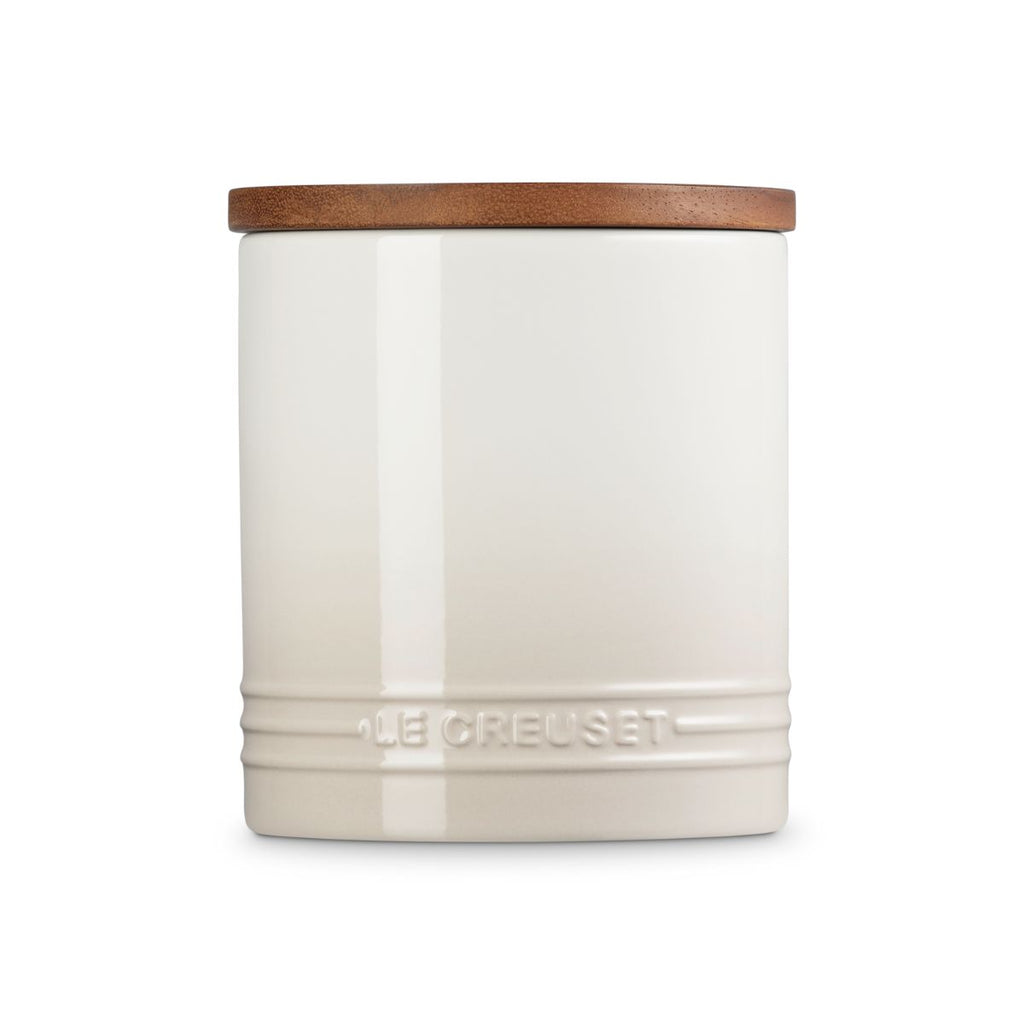 Elegant and versatile in all its sizes and colours, the new design of the Le Creuset Signature Ceramic Jar with Wooden Lid will win you over. This stoneware jar with wooden lid is highly functional. Thanks to the silicone seal on the lid, it is perfect as a storage container with an airtight closure. It’s great both for storing dry ingredients in the kitchen cupboard and for bringing sugar, salt, sauces or breadsticks to the table. Choose your size and colour – or mix and match to organise your kitchen in the most elegant way!
