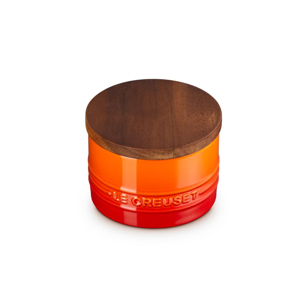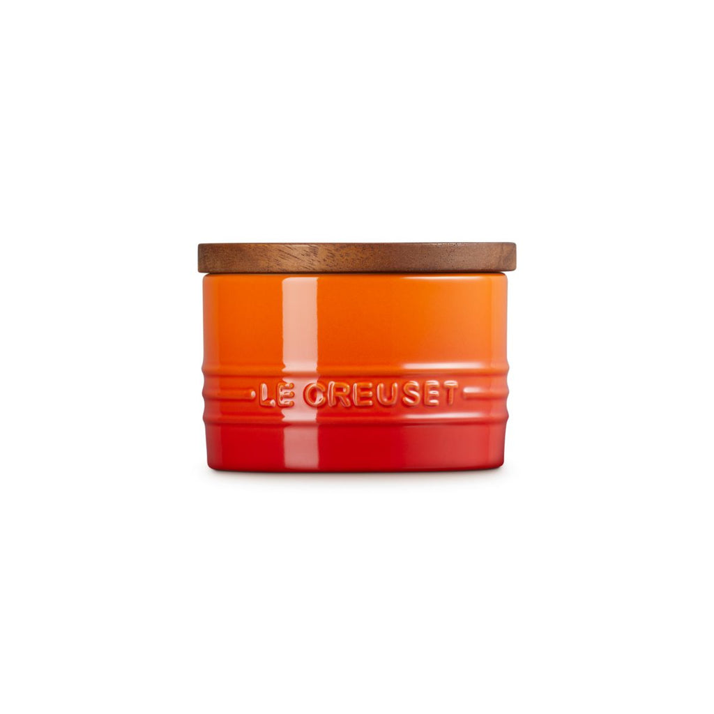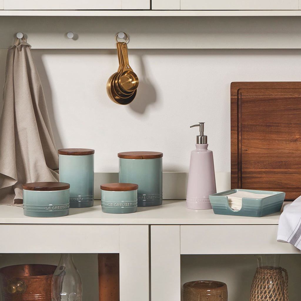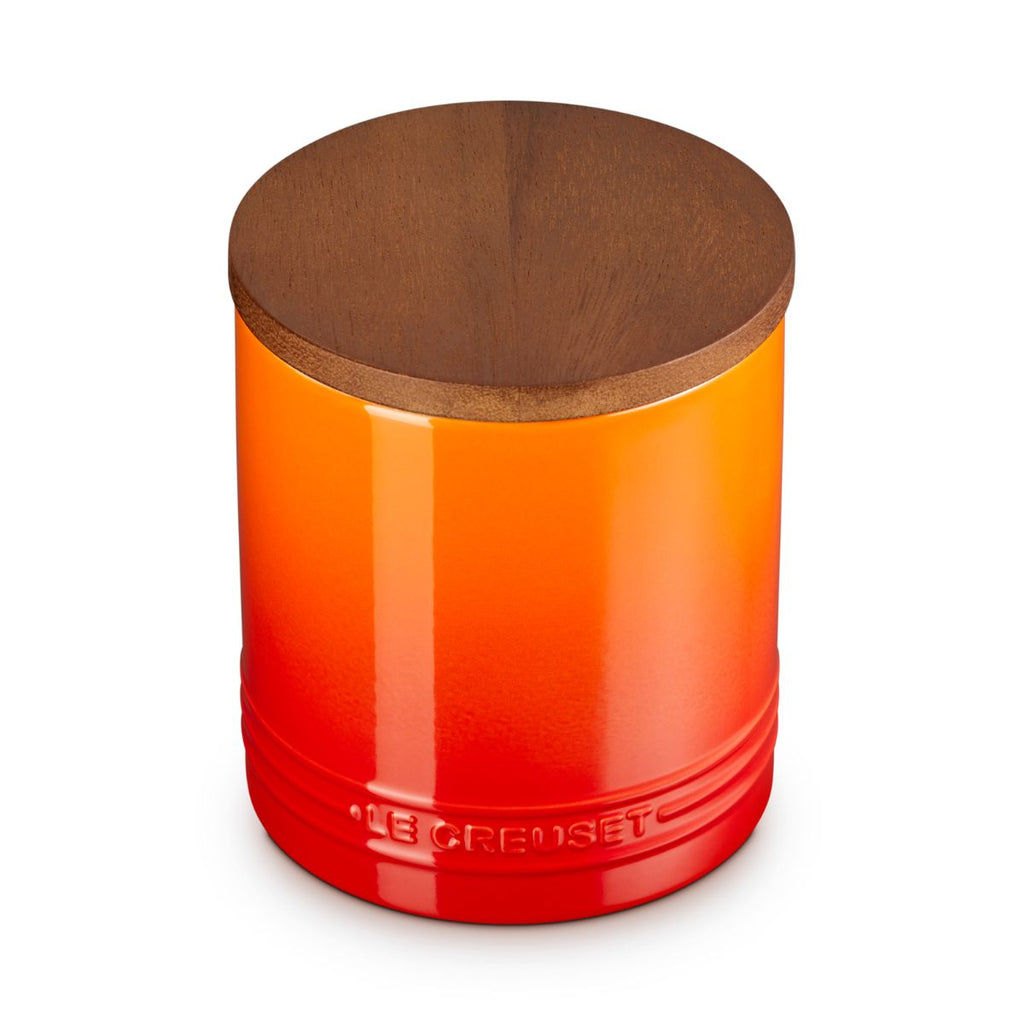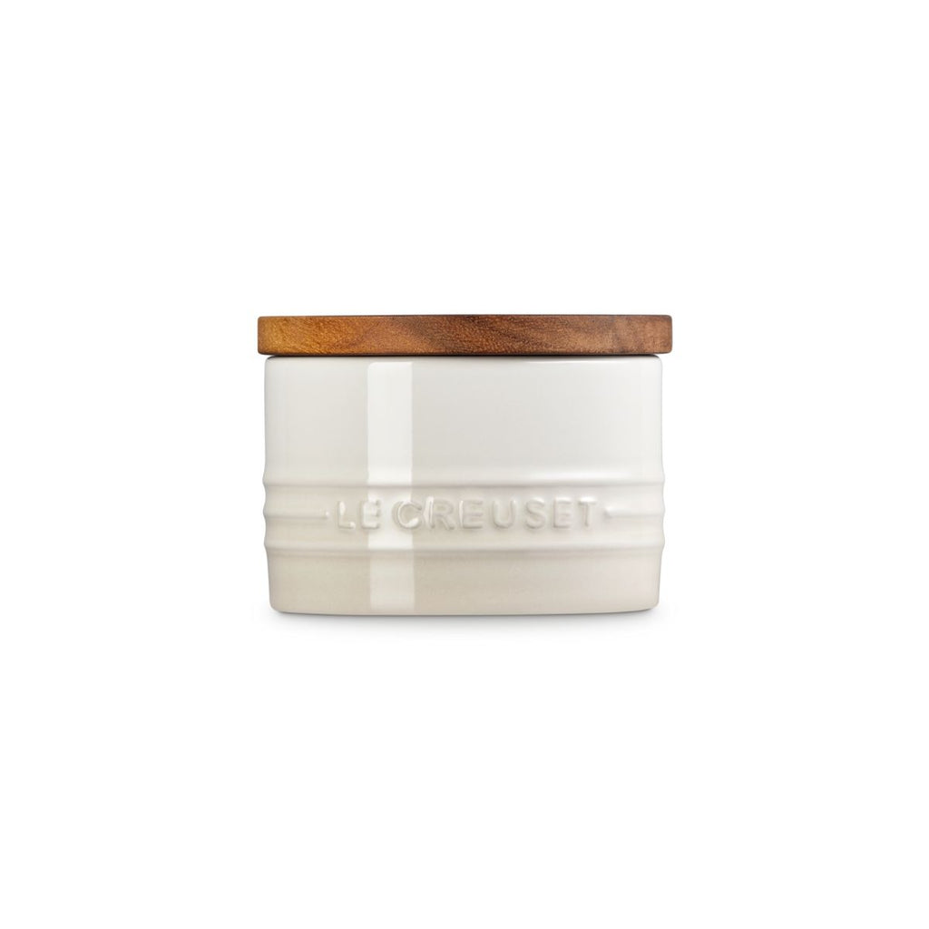 Elegant and versatile in all its sizes and colours, the new design of the Le Creuset Signature Ceramic Jar with Wooden Lid will win you over. This stoneware jar with wooden lid is highly functional. Thanks to the silicone seal on the lid, it is perfect as a storage container with an airtight closure. It’s great both for storing dry ingredients in the kitchen cupboard and for bringing sugar, salt, sauces or breadsticks to the table. Choose your size and colour – or mix and match to organise your kitchen in the most elegant way!