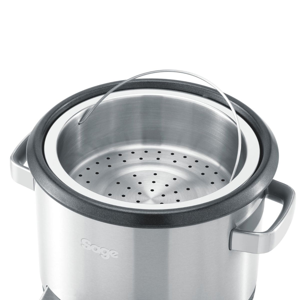 The Risotto Plus multifunction rice cooker by Sage Breville is made from brushed stainless steel and comes with a tempered glass lid. It also includes a stainless steel steaming tray, a serving spoon and a measuring cup. Don't let it slip away!