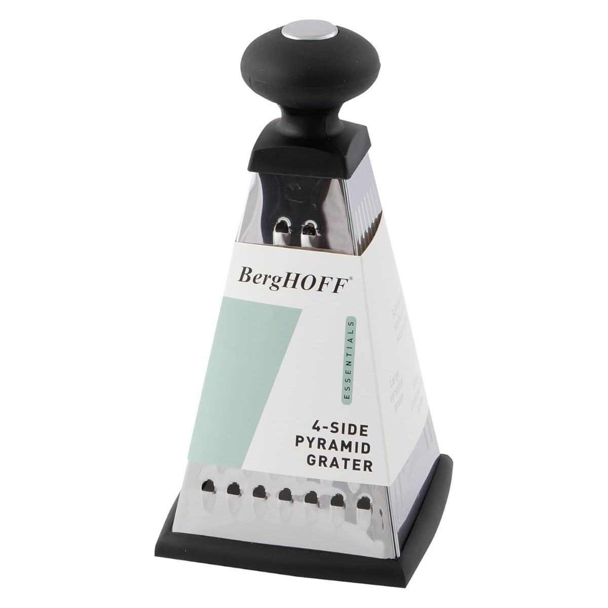 Tired of keeping multiple graters in your kitchen drawer? One for fine grating, another for coarse... and what about slicing? Solve it all with this Berghoff 4-sided pyramid grater. This 4-in-1 grater is all you need to grate, slice or shred any ingredient with ease.