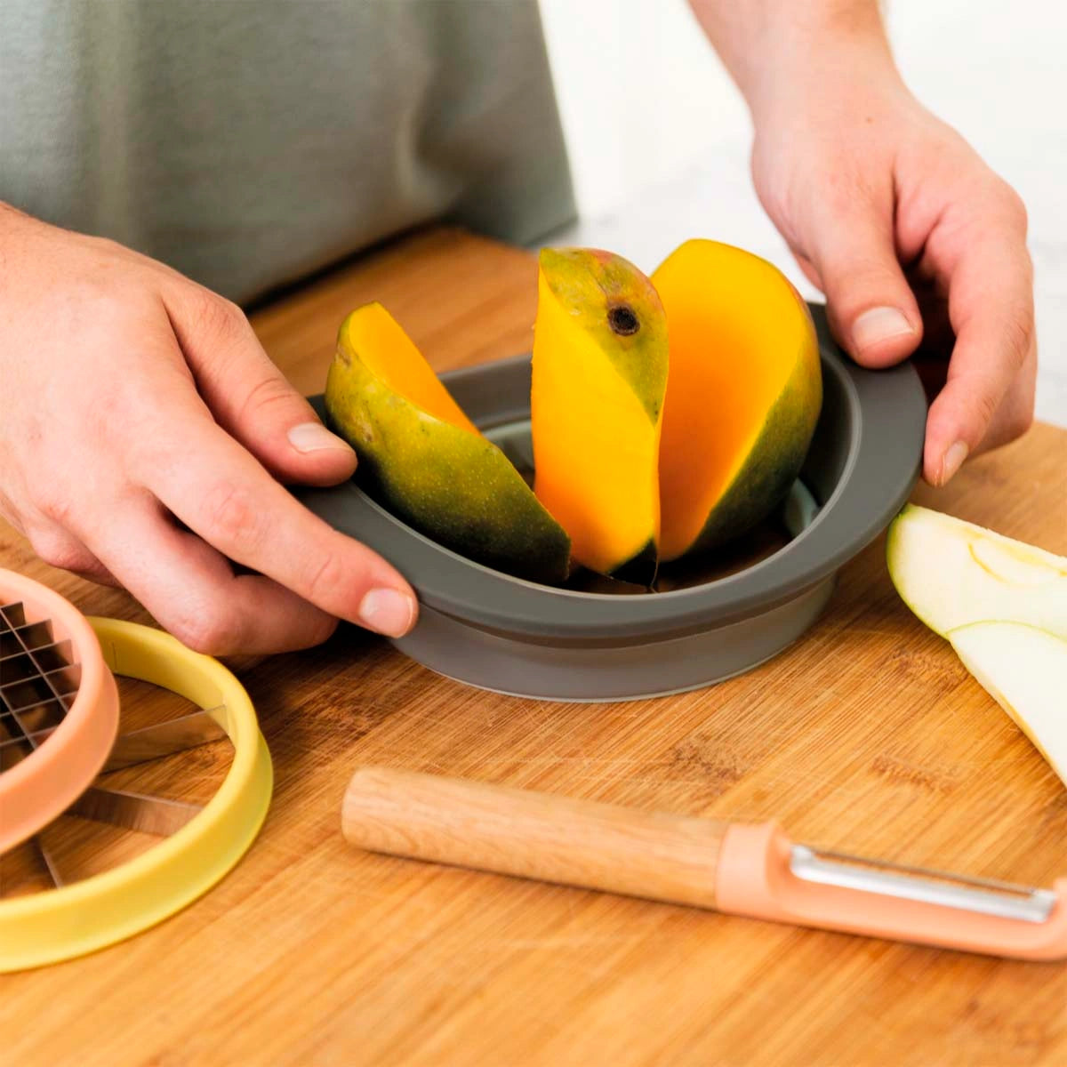 Just a simple press is enough to core an apple for your pie. You can dice mango for a dessert or cut potatoes for a side dish effortlessly. This fruit and vegetable cutter set will become one of the most-used tools in your kitchen.