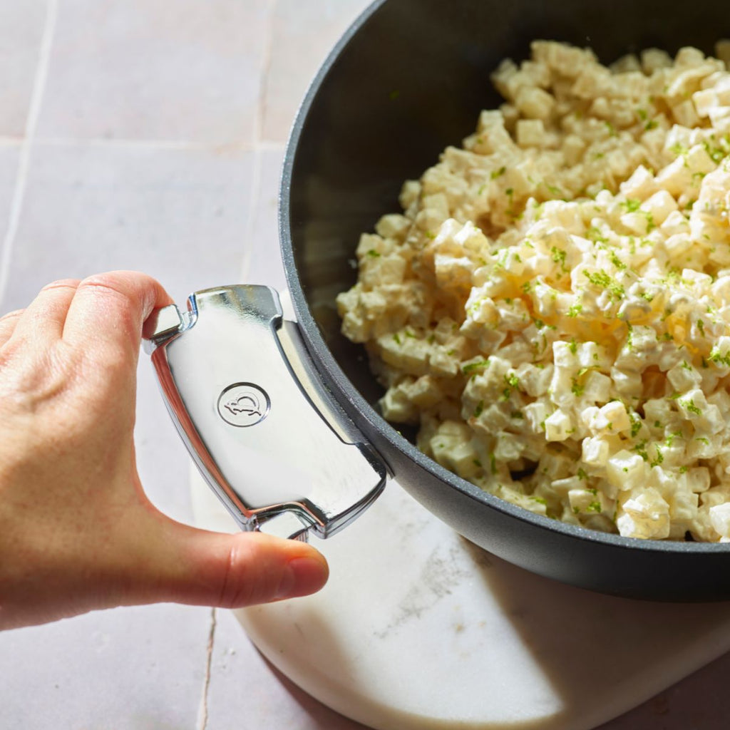 The handles fit perfectly all utensils from the Loqy collection. The clip-on system makes them very easy to put on and take off, even with one hand, and allow you to handle all Loqy pieces from De Buyer comfortably and safely.