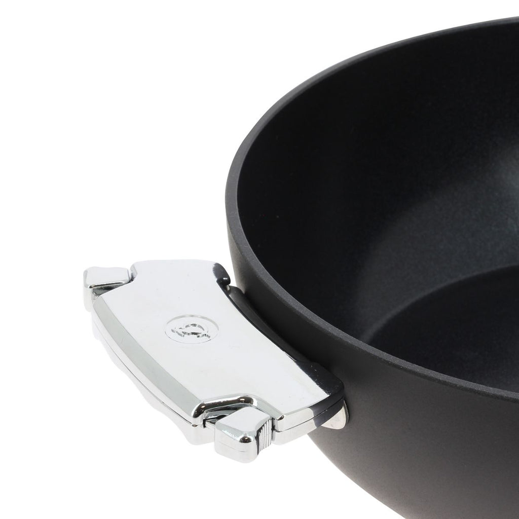 Both the grip and the handles are suitable and unique for all pieces in the Loqy collection from De Buyer, which includes utensils from four different ranges:
