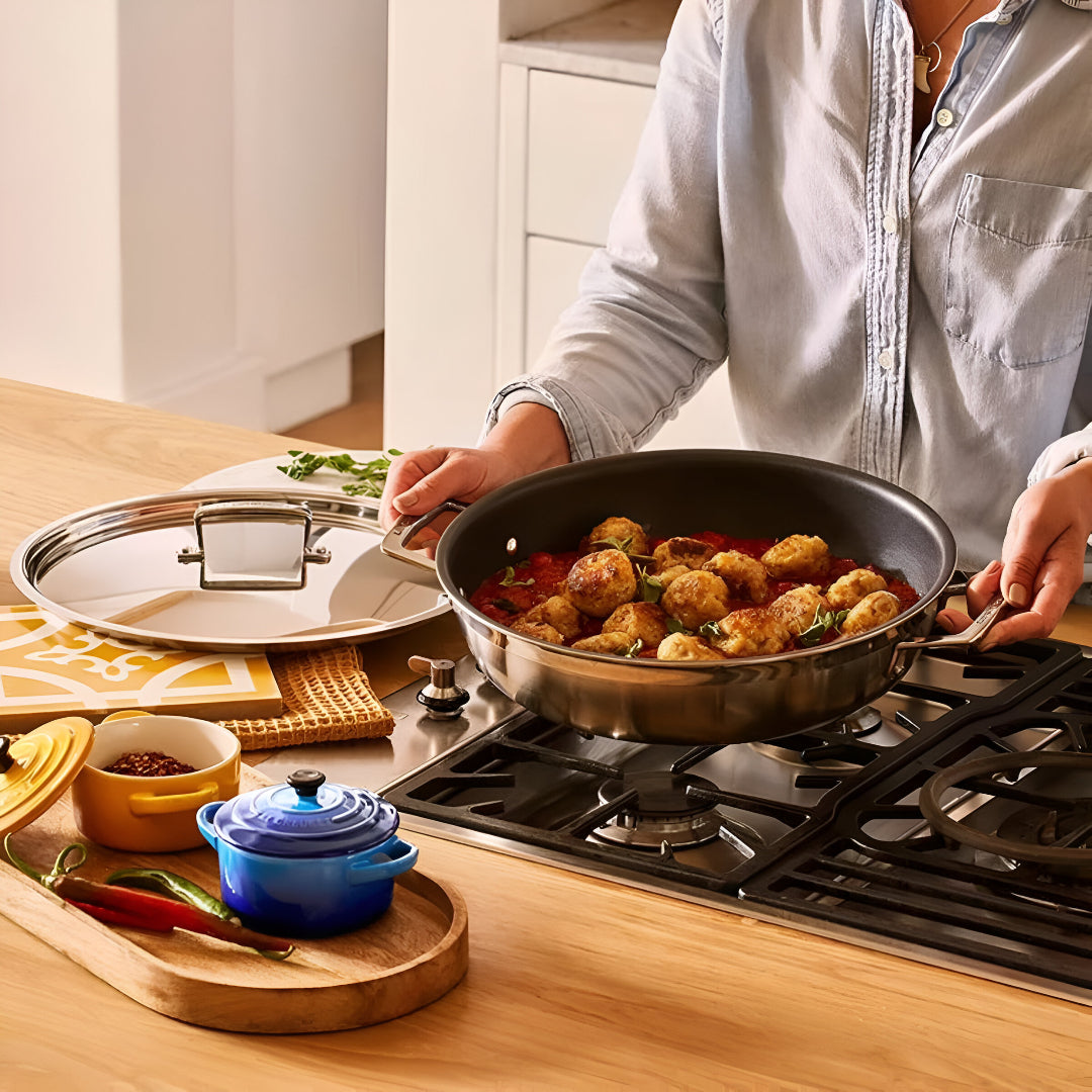 Le Creuset 3-ply Stainless Steel Non-Stick Shallow Casserole with Lid