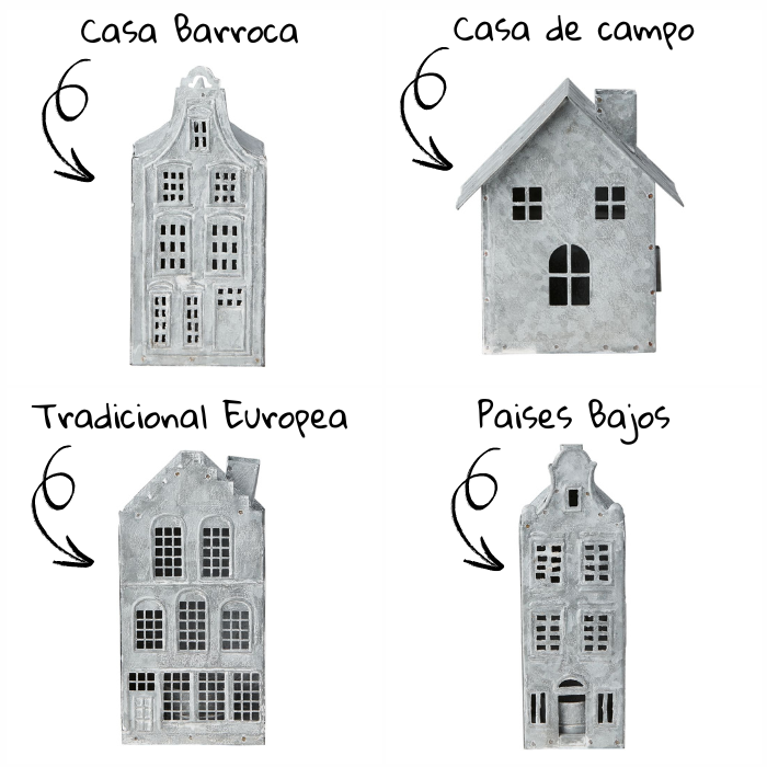 All designs feature 3.8 cm openings for tealight candles, which when lit create a beautiful play of light that filters through the windows of the little houses, filling the room with a soft and super cozy glow. It is a decorative and functional piece that gives character to any corner, creating a magical atmosphere both on cold winter nights and warm summer evenings.